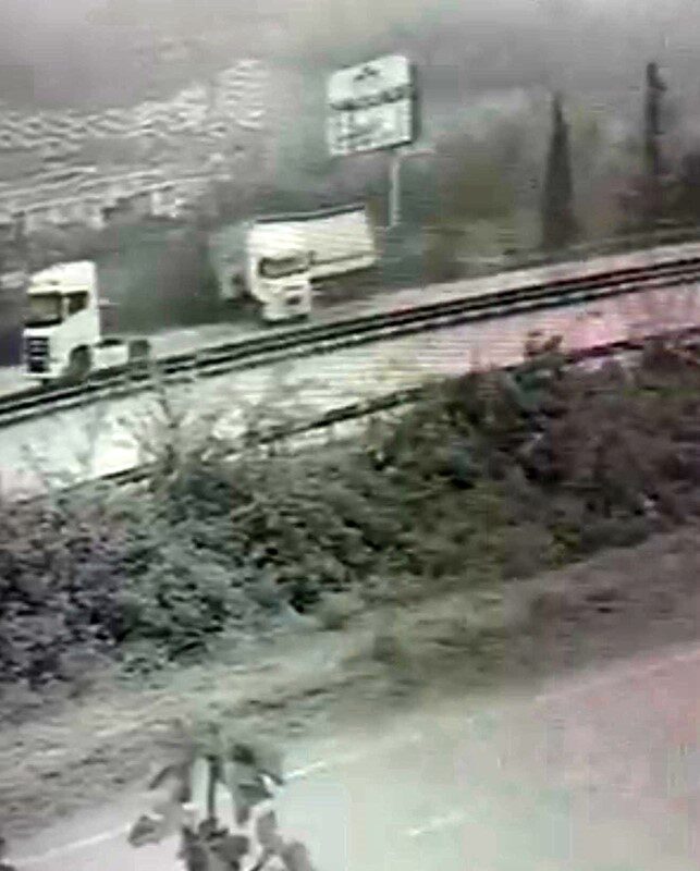 Otoyolun Sapanca geçişi Yeni Mahalle mevkii Ankara istikametinde saat 08.30 sıralarında meydana gelen kazada, A.Ç. idaresindeki 49 AAS 038 plakalı tır, bariyerlere çarparak yan yattı. Meydana gelen kaza sebebiyle otoyolun Ankara istikametinde trafik durdu, sürücüler kontak kapattı. Durumun haber verilmesi üzerine bölgeye sağlık ve jandarma ekipleri sevk edildi. Olay yerine gelen ekipler, tırı bulunduğu yerden kaldırmak için çalışmalarına yaklaşık 3 saattir devam ederken kaza anı güvenlik kamerasına yansıdı. Görüntülerde, tırın kontrolden çıkarak bariyerlere çarpması ve otoyolda yan yatması ve bir aracın son anda durması yer alıyor.