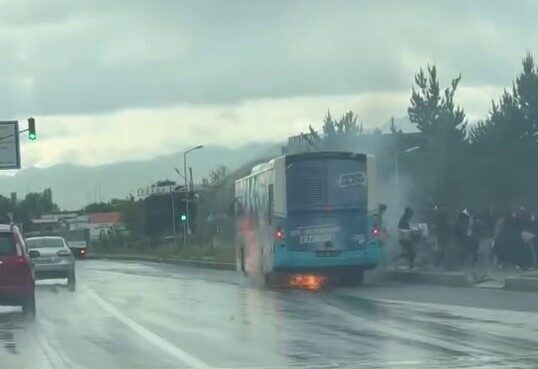 Erzurum’un Aziziye ilçesinde sefer halindeki belediye otobüsü henüz bilinmeyen nedenle alev aldı. Çıkan yangınla panikleyen yolcular hızla kendilerini araçtan dışarı attı. Araçtan hızla uzaklaşan yolcuların korku dolu anları ve aracın alev alması yoldan geçen diğer sürücülerce cep telefonları ile kaydedildi. Bu arada bazı sürücüler yangın tüpleri ile yardıma gelerek söndürme çalışmalarına katıldı. Söndürülen yangında yaralanan olmazken, çıkış nedeni araştırılıyor.