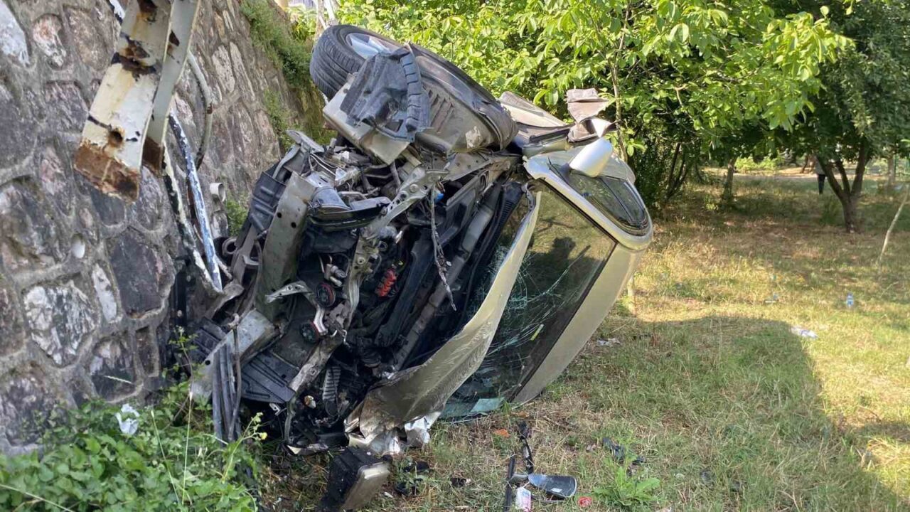 Kocaeli’nin İzmit ilçesinde demir korkuluklara çarpıp, 2 metre yükseklikten takla atan otomobilin sürücüsü kazayı yara almadan atlattı.
