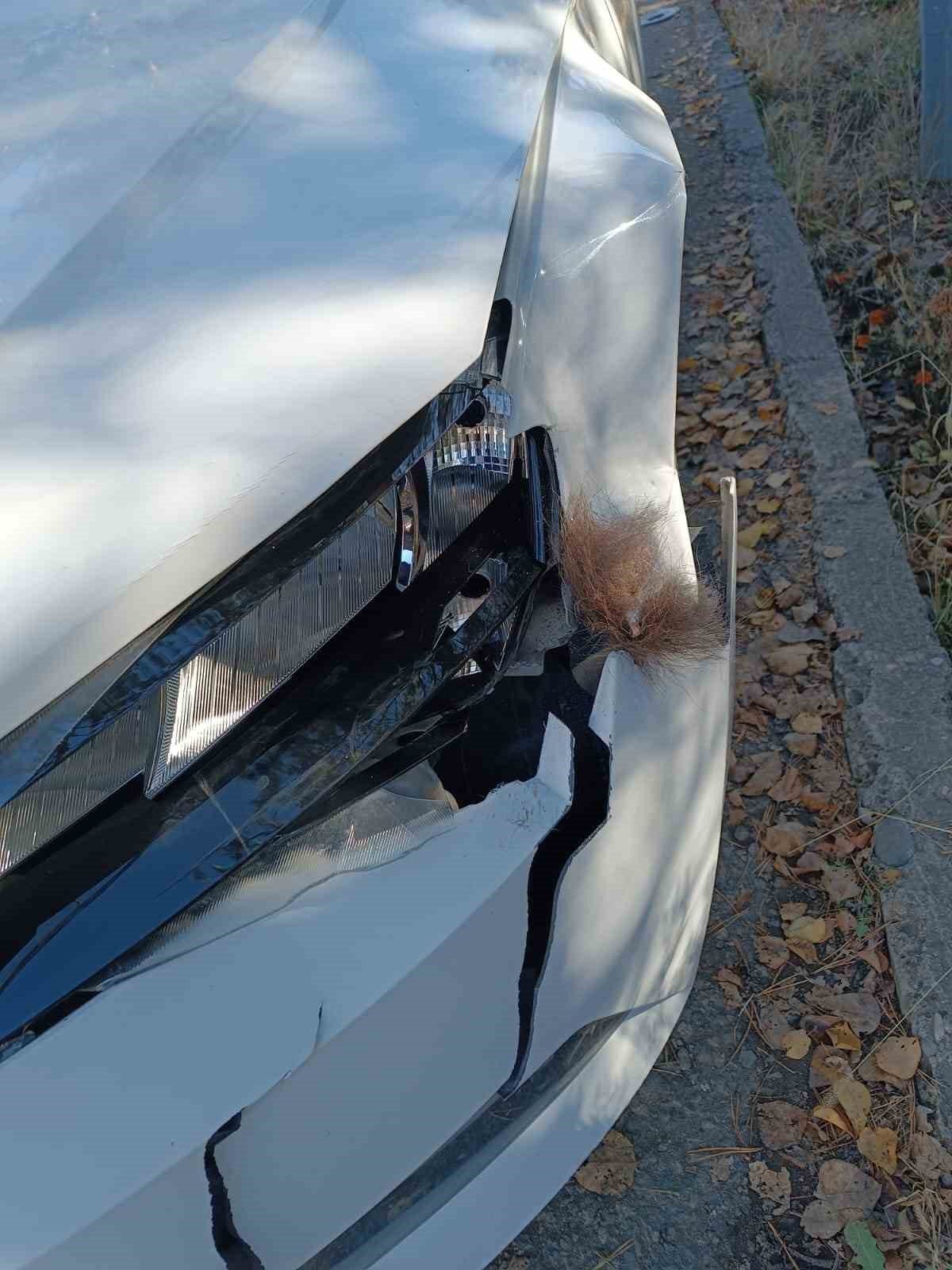 Erzurum istikametinden İspir’e seyreden 25 AET 245 plakalı otomobil, Çalıdere Çeşmesi’ne gelmeden yolun ortasına aniden çıkan boz ayıya çarptı.