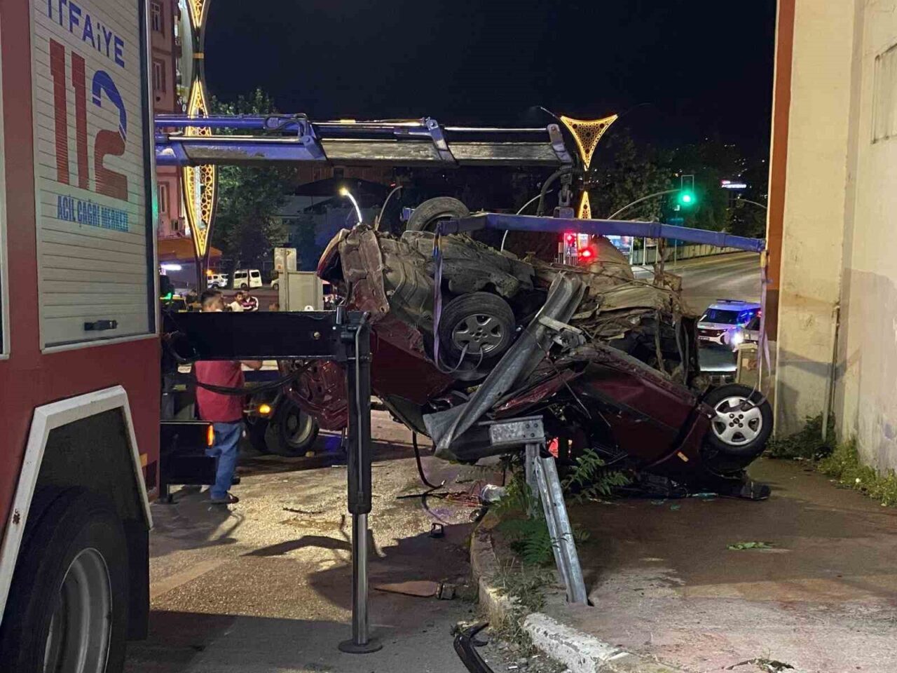 KOCAELİ’NİN İZMİT İLÇESİNDE RAMPA AŞAĞI İNEN OTOMOBİLİN, ÇARPTIĞI BARİYERİ YAKLAŞIK 80 METRE SÜRÜKLEYİP TAKLA ATARAK ASILI KALMASI SONUCU 2 KİŞİ HAYATINI KAYBETTİ, 3 KİŞİ YARALANDI.