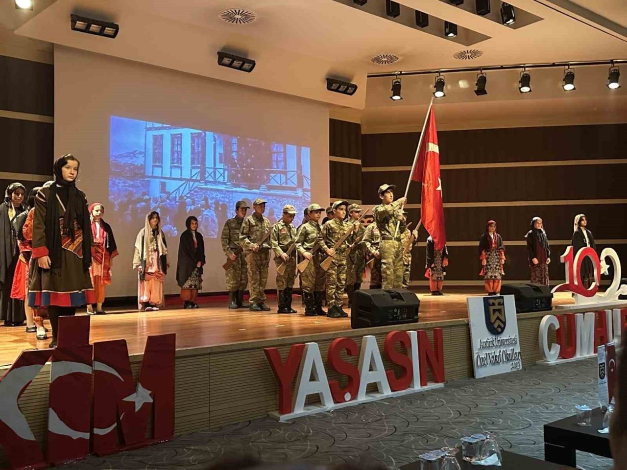 Program öncesi konuşan Atatürk Üniversitesi Özel Vakıf Ortaokul Müdürü Hakan Talaz Cumhuriyet’in çocuklara ve gençlere emanet edildiğini vurgulayarak şunları söyledi:
