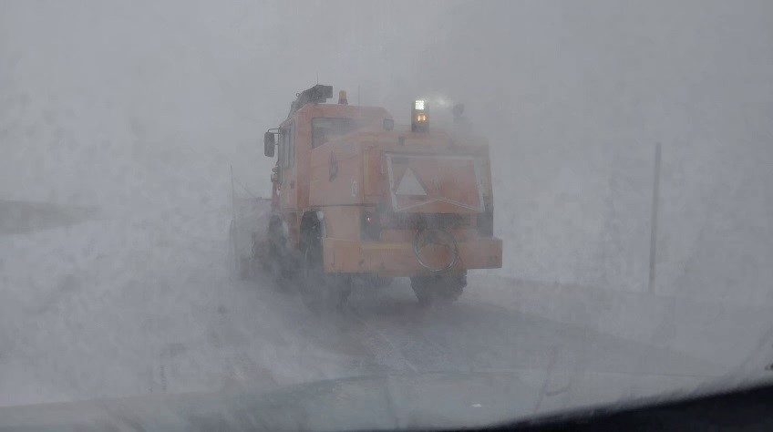 Bölgede karla mücadele çalışması yapan kara yolları ekipleri de etkili olan fırtına ve görüş mesafesinin düşmesi nedeniyle zor anlar yaşadı. Ekipler yolu ulaşıma açık tutmak için seferber olurken, sürücülerin dikkatli olmaları istendi.