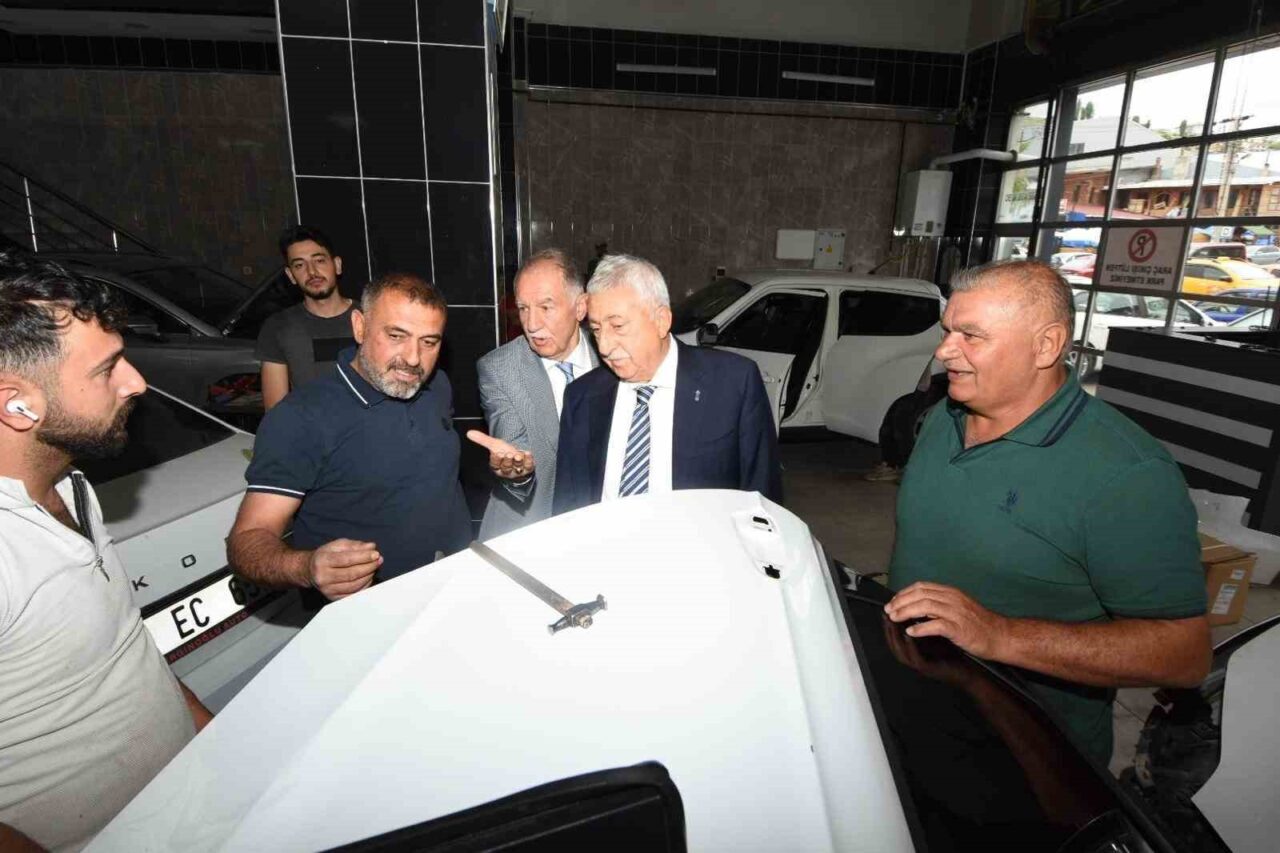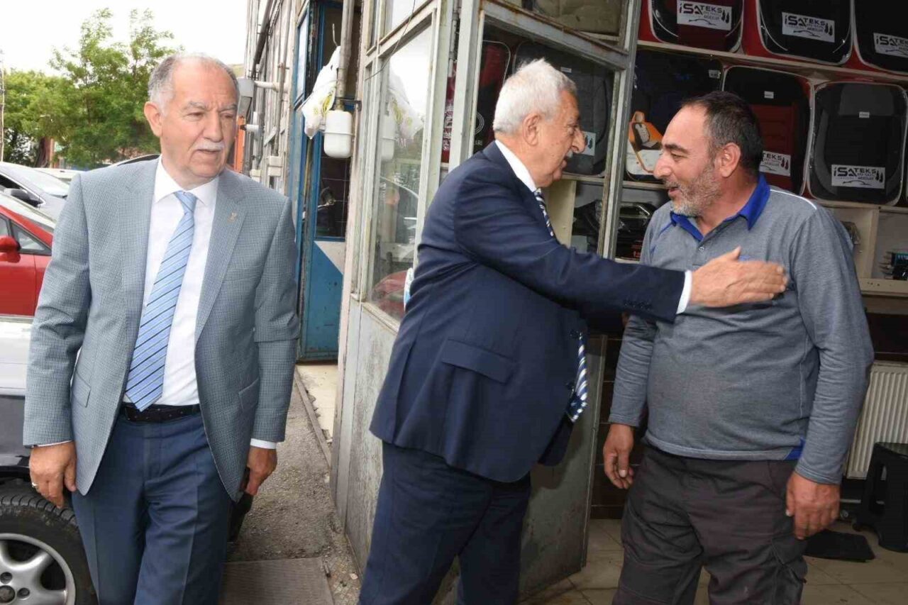 TESK Genel Başkanı Bendevi Palandöken, ESOB Başkanı Fırat ile birlikte Sanayi Sitesinde esnafı gezerek iş yeri sahipleri, işciler ile bir süre sohbet etti.