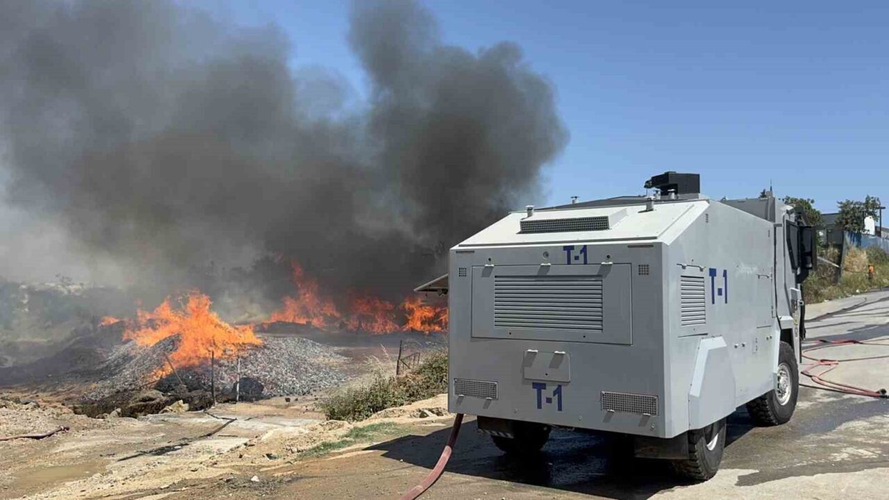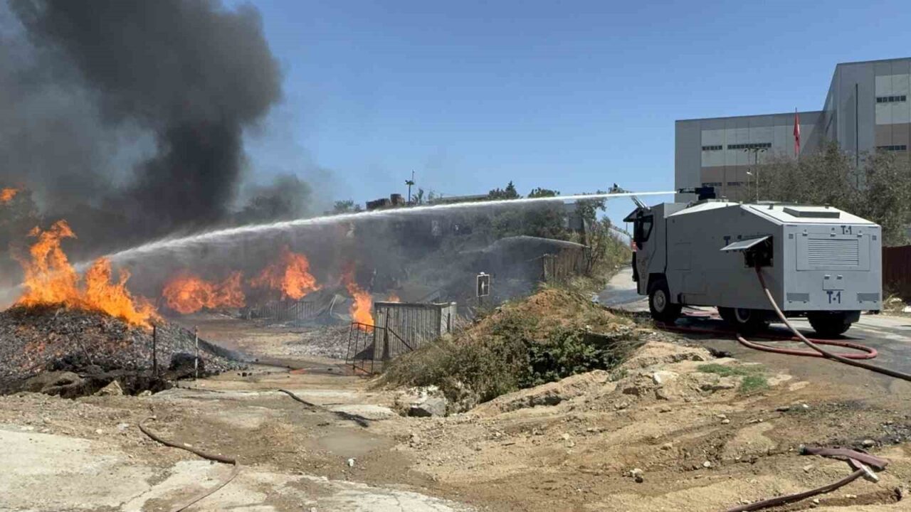 YAKLAŞIK İKİ SAAT SÜREN ÇALIŞMANIN ARDINDAN YANGIN KONTROL ALTINA ALINIRKEN, POLİS EKİPLERİ DE ALEVLERE TOMA İLE MÜDAHALE ETTİ.