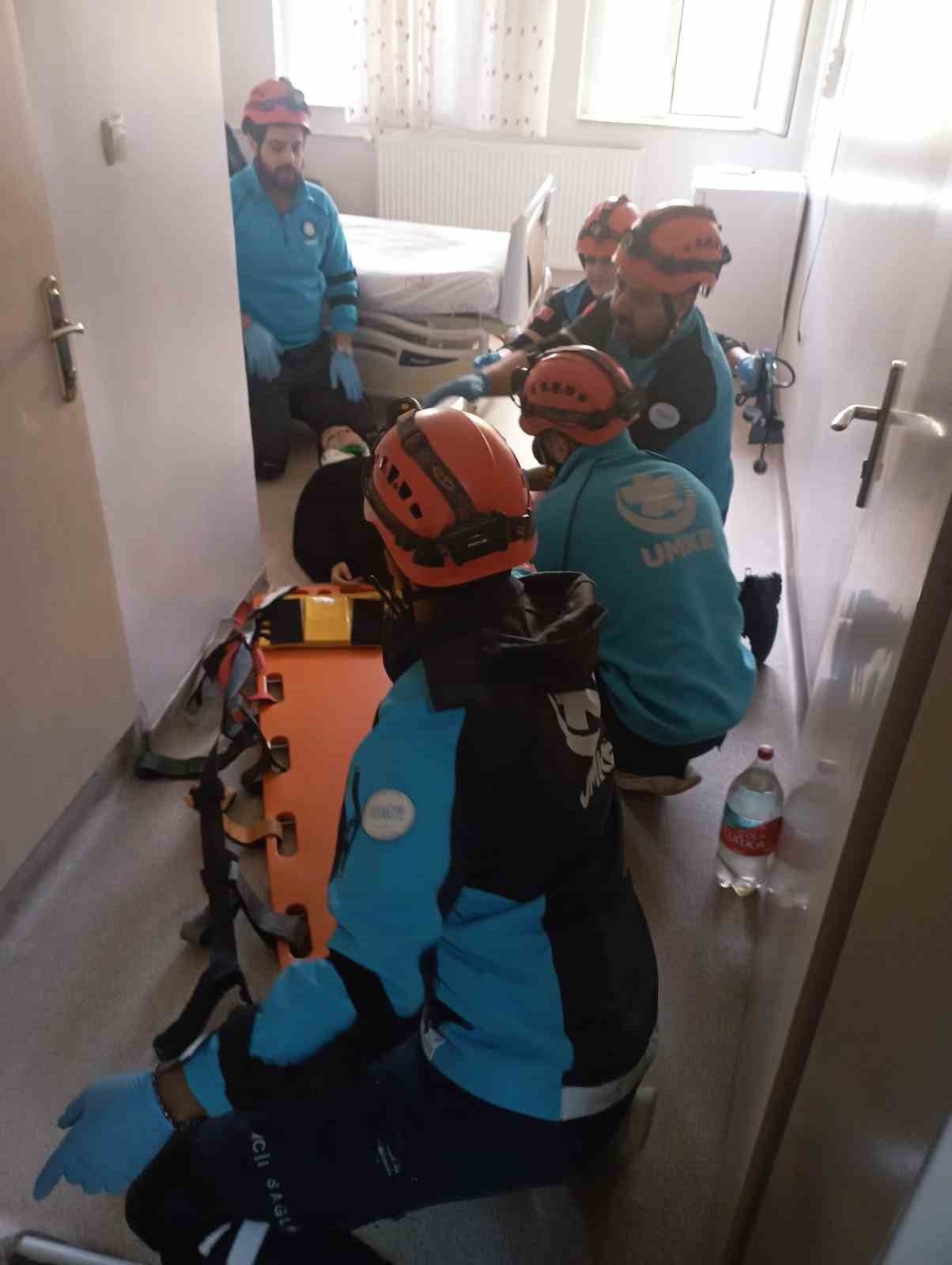 Palu Devlet Hastanesi’nde deprem ve yangın tatbikatı gerçeği aratmadı.