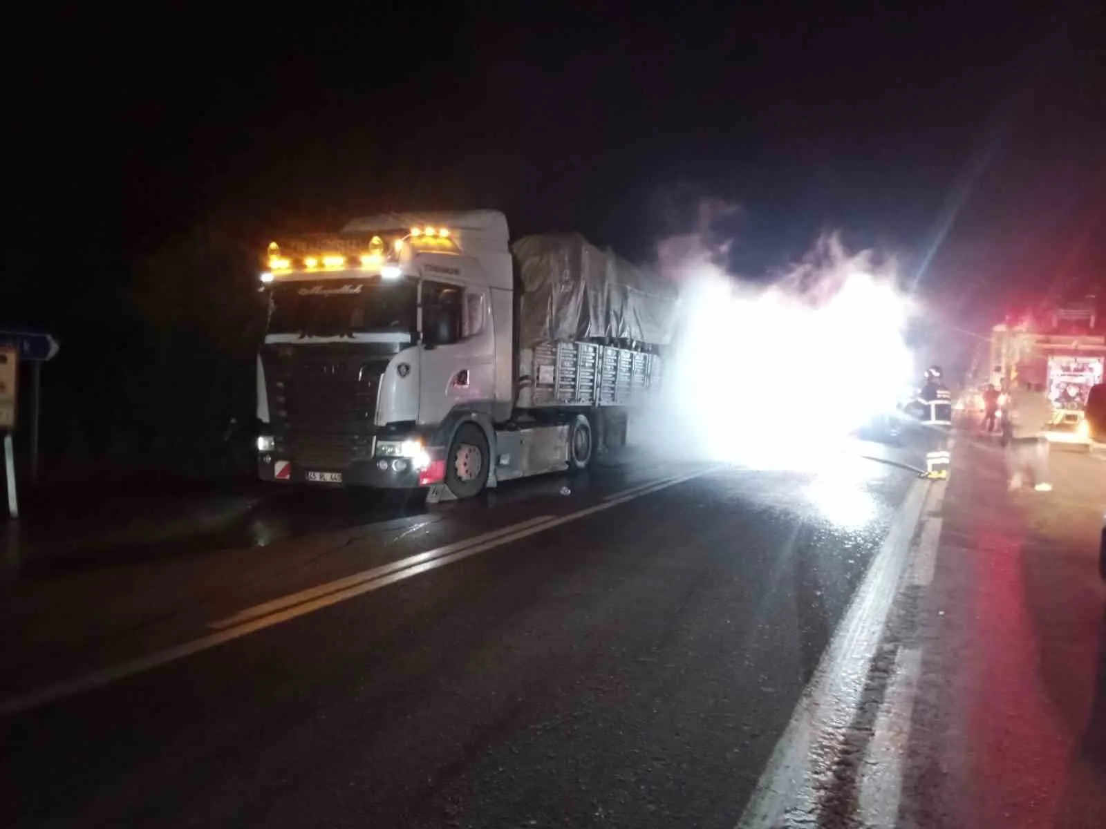 SAKARYA’NIN PAMUKOVA İLÇESİNDE TOMRUK YÜKLÜ TIRIN BALATALARINDA ÇIKAN YANGIN İTFAİYE EKİPLERİNCE SÖNDÜRÜLDÜ. OLAYA ŞAHİT OLAN BİR KİŞİ O ANLARI SPİKER GİBİ ANLATTI.