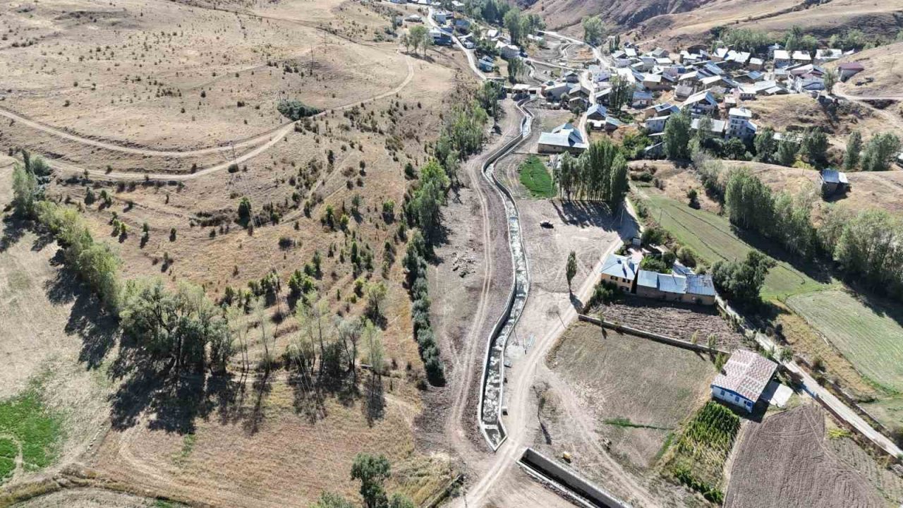 Bayburt merkeze bağlı Pamuktaş köyünde yapımı süren Karayalak Deresi taşkın kontrol inşaatında sona yaklaşıldı.