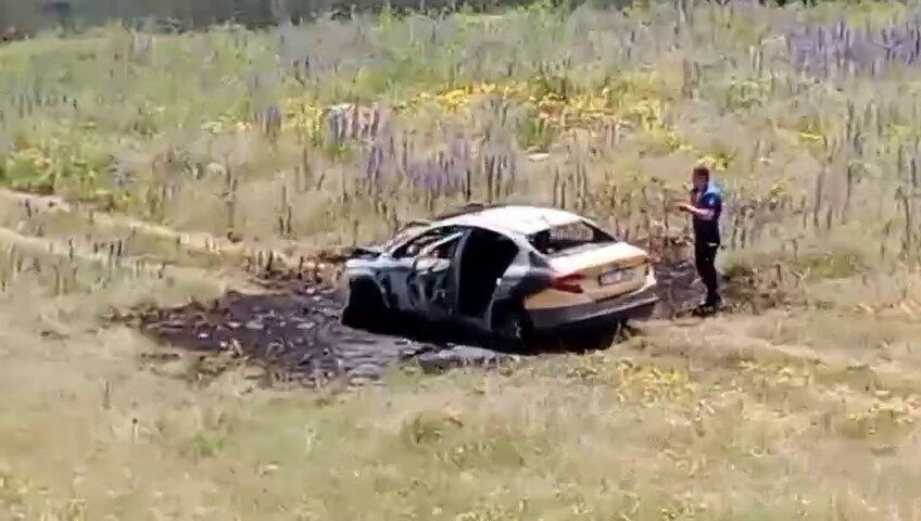 Polis boş arazide bulunan araçta çıkan yangın ile ilgili inceleme ve soruşturmayı sürdürüyor.