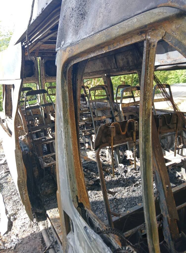 Kastamonu’nun İnebolu ilçesinde park halindeyken alevlere teslim olan minibüsten geriye iskeleti kaldı.