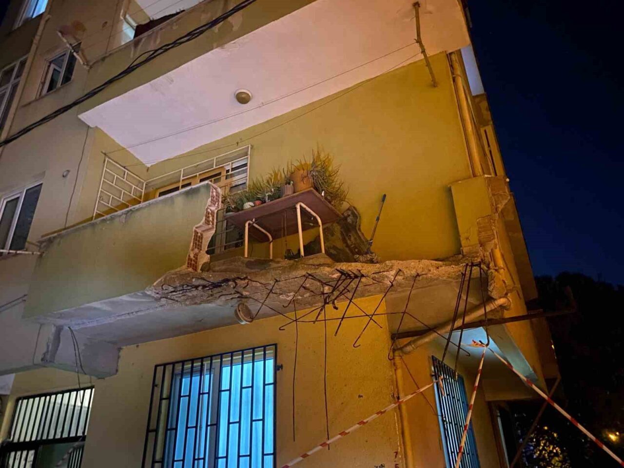 İstanbul Pendik’te 5 katlı binanın 1. katındaki dairenin balkonu çöktü.