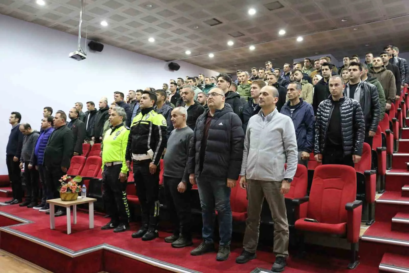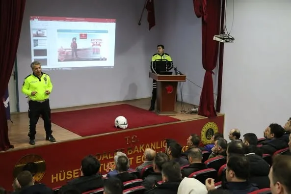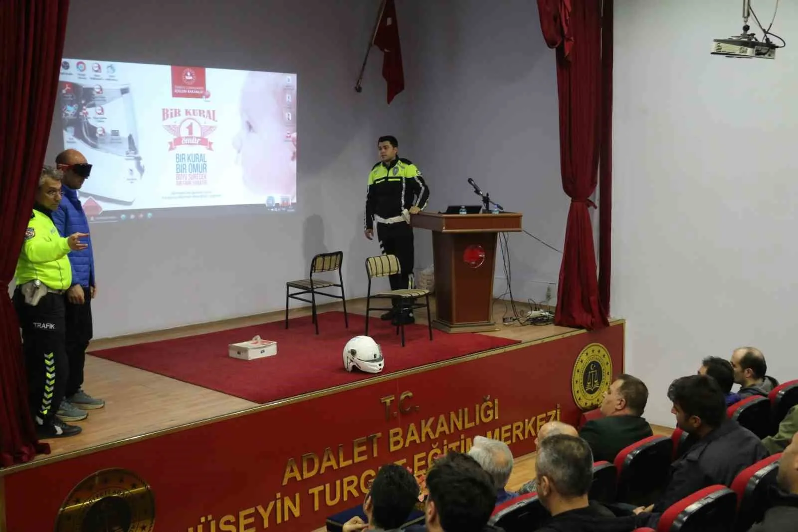 Çalışmalar kapsamında; Erzurum Trafik Tescil ve Denetleme Şube Müdürlüğü personelleri tarafından Hüseyin Turgut Eğitim Merkezi Müdürlüğünde Ceza İnfaz Koruma Amir ve Memuru toplam 150 kişiye trafik güvenliğinin iyileştirilmesi ve güvenli motosiklet kullanımı konularında seminer verildi.