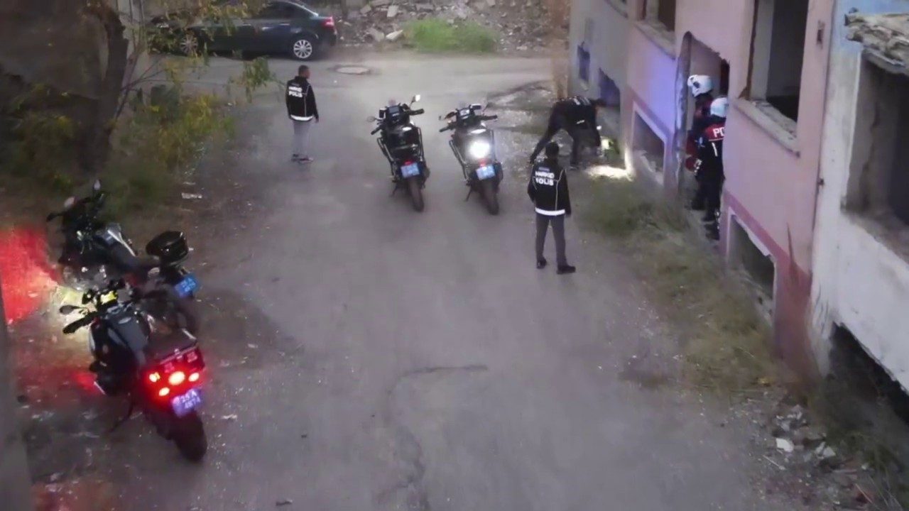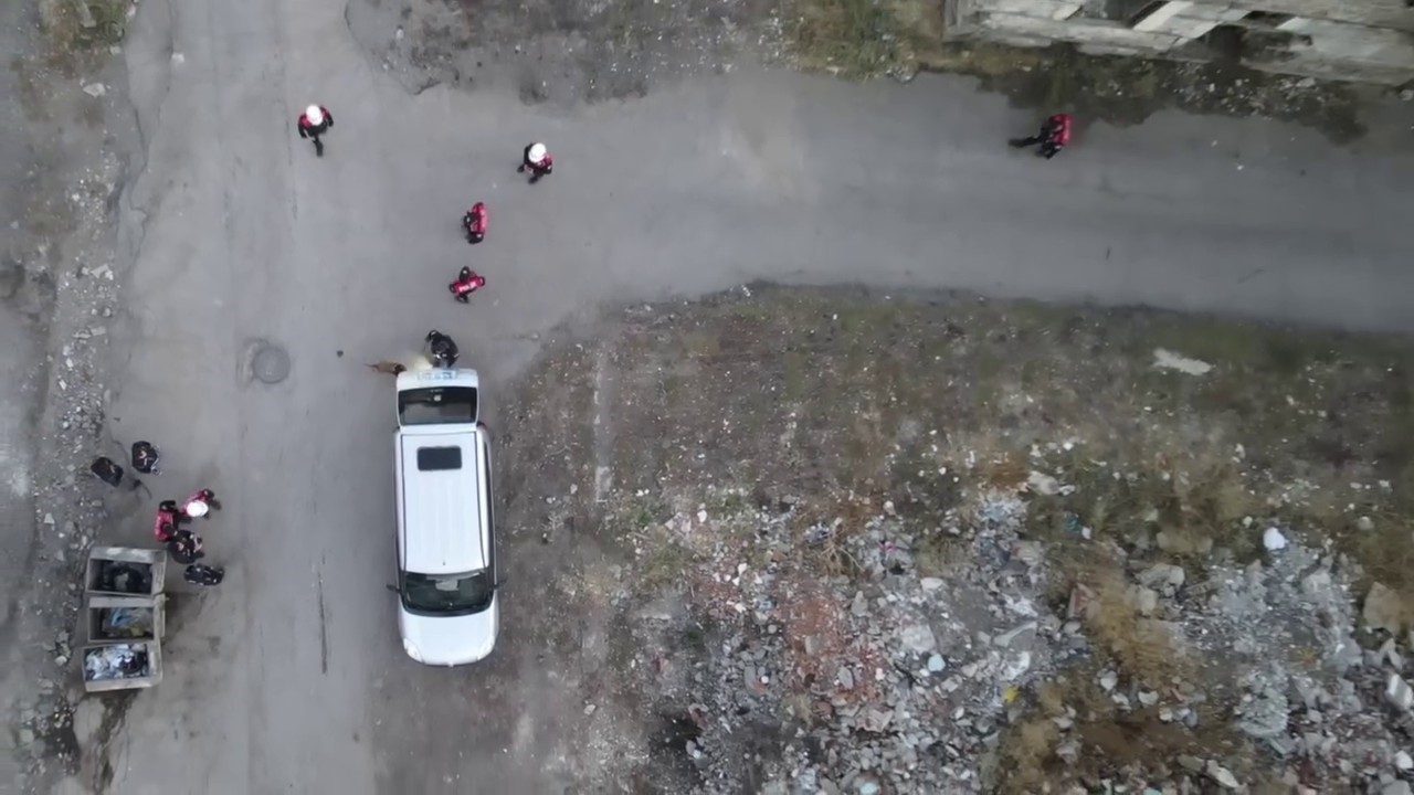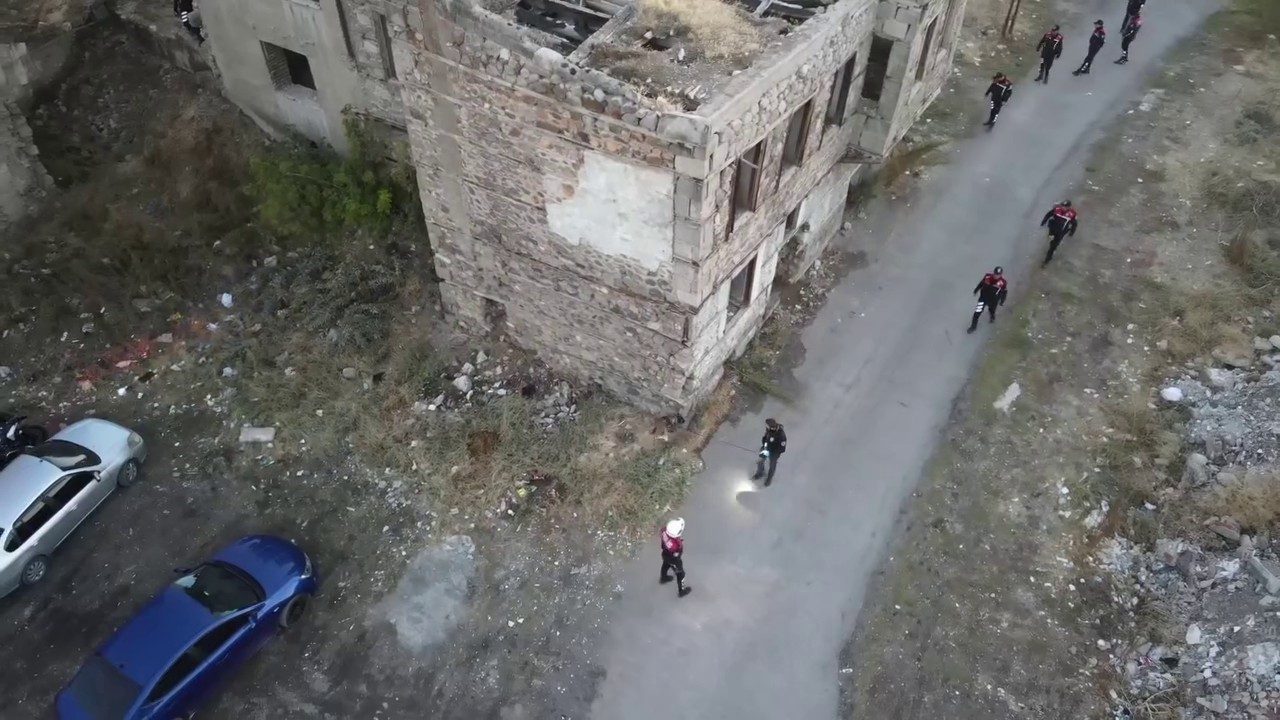 KENTİN BİRÇOK YERİNDE BULUNAN VE TERK EDİLMİŞ BİNALARA BASKIN YAPAN EKİPLER, ARAMA KÖPEKLERİYLE HER TARAFI DİDİK DİDİK ARADI.