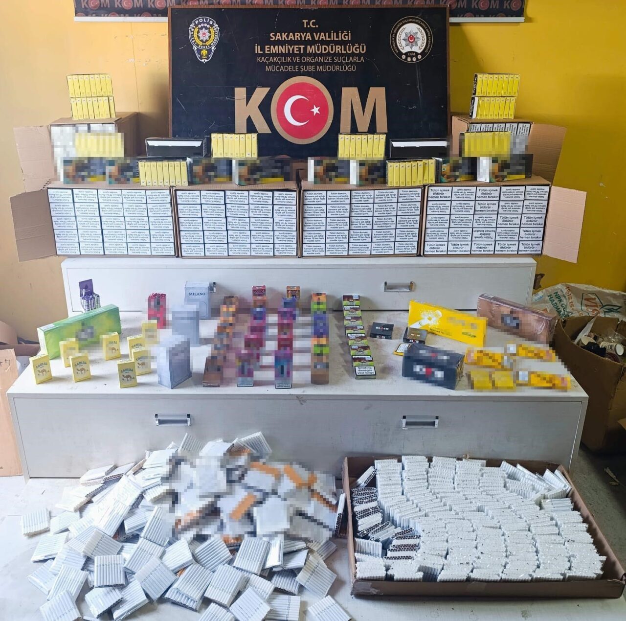 Sakarya İl Emniyet Müdürlüğü, sorumluluk bölgesinde kaçakçılığa geçit vermiyor. Bu çerçevede Kaçakçılık ve Organize Suçlarla Mücadele Şube Müdürlüğü’nce Adapazarı ve Serdivan ilçesinde iki ayrı adrese operasyon düzenlendi. Operasyonda M.E.C. ve B.S.T. simli iki şüpheli gözaltına alındı. Yapılan aramalarda ise 100 bin 200 adet boş makaron, 21 bin 260 adet sarma sigara, 541 paket sigara, 176 adet puro, 38 adet elektronik sigara, 105 adet cinsel içerikli jel ve 10 paket sigara sarma kağıdı ele geçirildi.