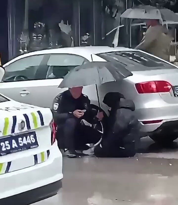 ERZURUM’DA MEYDANA GELEN BİR KAZADA YARALANAN KÜÇÜK KIZA ISLANMAMASI İÇİN POLİS ŞEMSİYE TUTTU. GÖRÜNTÜ SOSYAL MEDYADA TAKDİR TOPLADI.