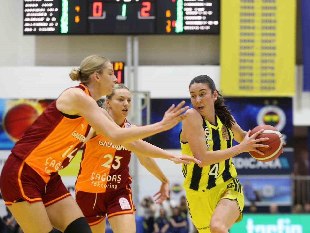 Halkbank Kadınlar Basketbol Süper Ligi’nin 18. haftasında Fenerbahçe, Galatasaray’ı konuk etti. Sarı-lacivertliler, parkeden 75-70’lik skorla galip ayrılarak ligdeki yenilmezlik serisini sürdürdü. Ev sahibinde Olcay Çakır Turgut kaydettiği 13 sayıyla takımın skoreri olurken, Kayla McBride 12, Emma Meesseman 11, Iliana Rupert de 10 sayıyla galibiyete önemli katkı verdi. Sarı-kırmızılılar ise ligde 3. mağlubiyetini aldı. Ezeli rakipler arasında 2’si lig, 1’i Türkiye Kupası olmak üzere oynanan 3 maçı da Fenerbahçe kazandı.