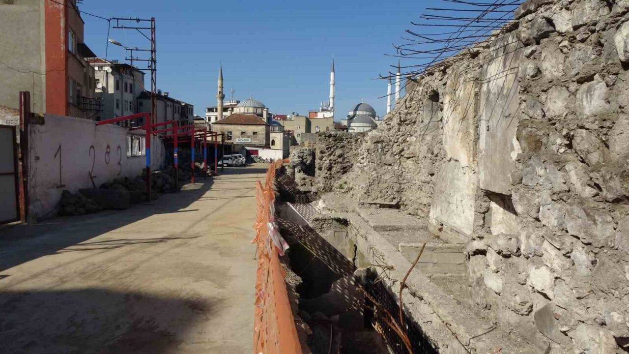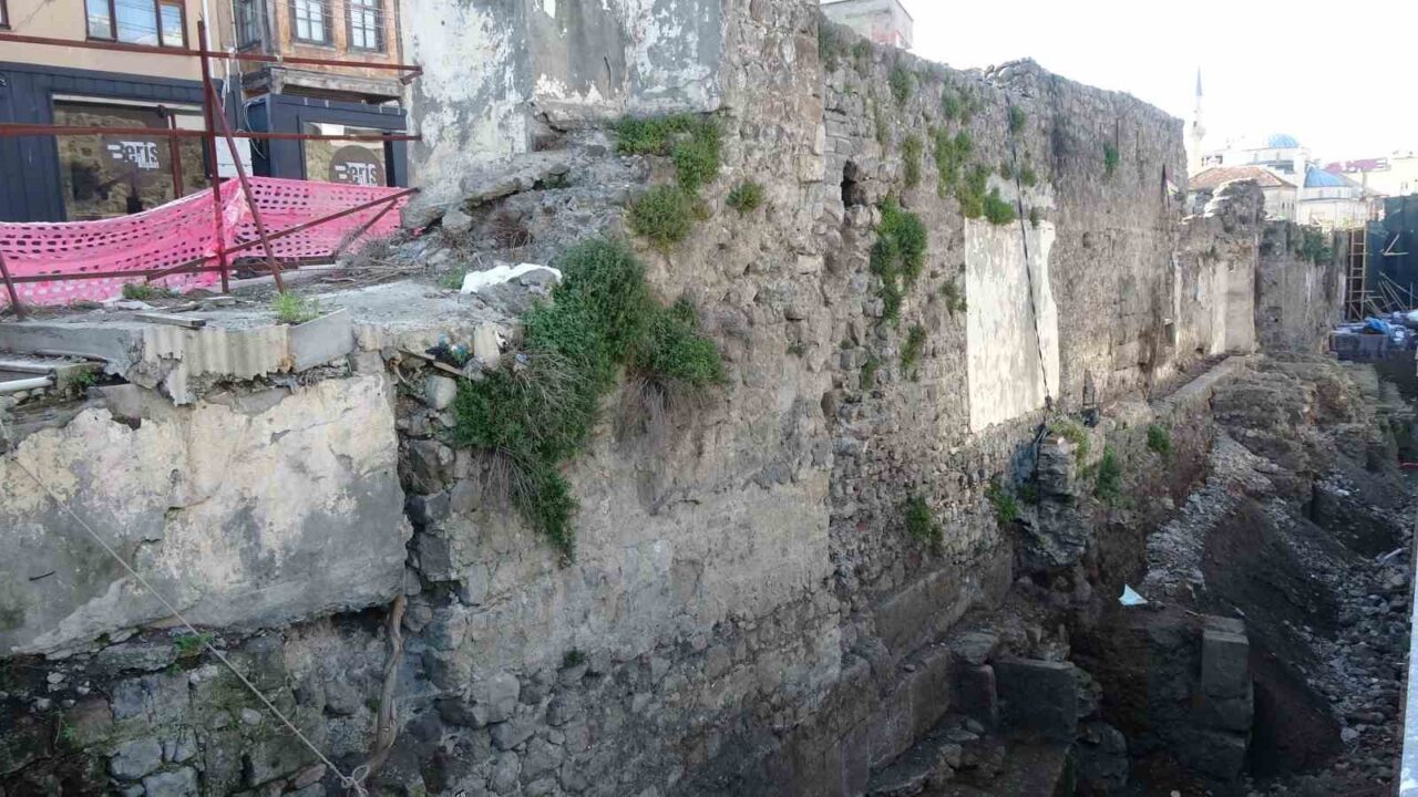 TRABZON’UN PAZARKAPI MAHALLESİ KADINLAR HALİ YANINDAKİ TARİHİ SUR DUVARLARININ RESTORASYON ÇALIŞMALARI SÜRÜYOR.