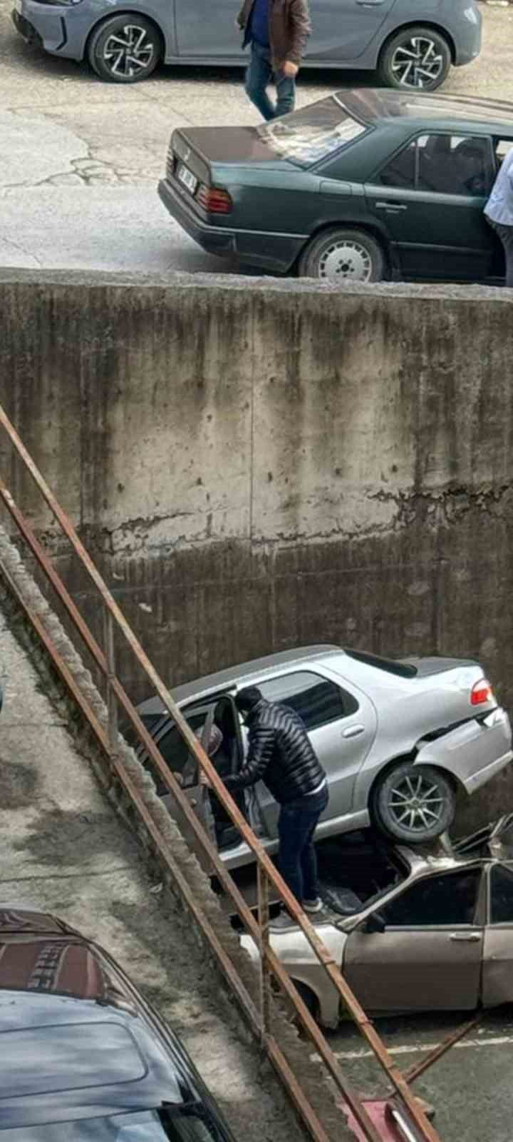 Olay, Karaağaç Mahallesi bayır mevkiinde yaşandı. Edinilen bilgilere göre, A.A.’nın kullandığı 67 DZ 751 plakalı otomobil rampayı çıkmak isterken bir anda geriye doğru kaydı. Sürücünün direksiyon hâkimiyetini kaybetmesiyle araç, yaklaşık 8 metre yükseklikten istinat duvarını aşarak alt bölümde park halinde bulunan bir otomobilin üzerine düştü.