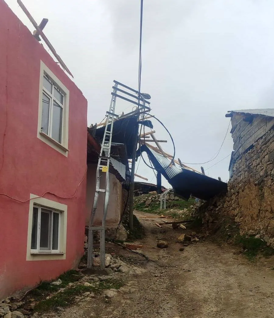 ERZİNCAN’IN REFAHİYE İLÇESİNDE ETKİLİ OLAN FIRTINA NEDENİYLE ŞAHALOĞLU KÖYÜNDE EVLERİN ÇATILARI UÇTU, ENERJİ NAKİL HATLARINDA TAHRİBAT MEYDANA GELDİ