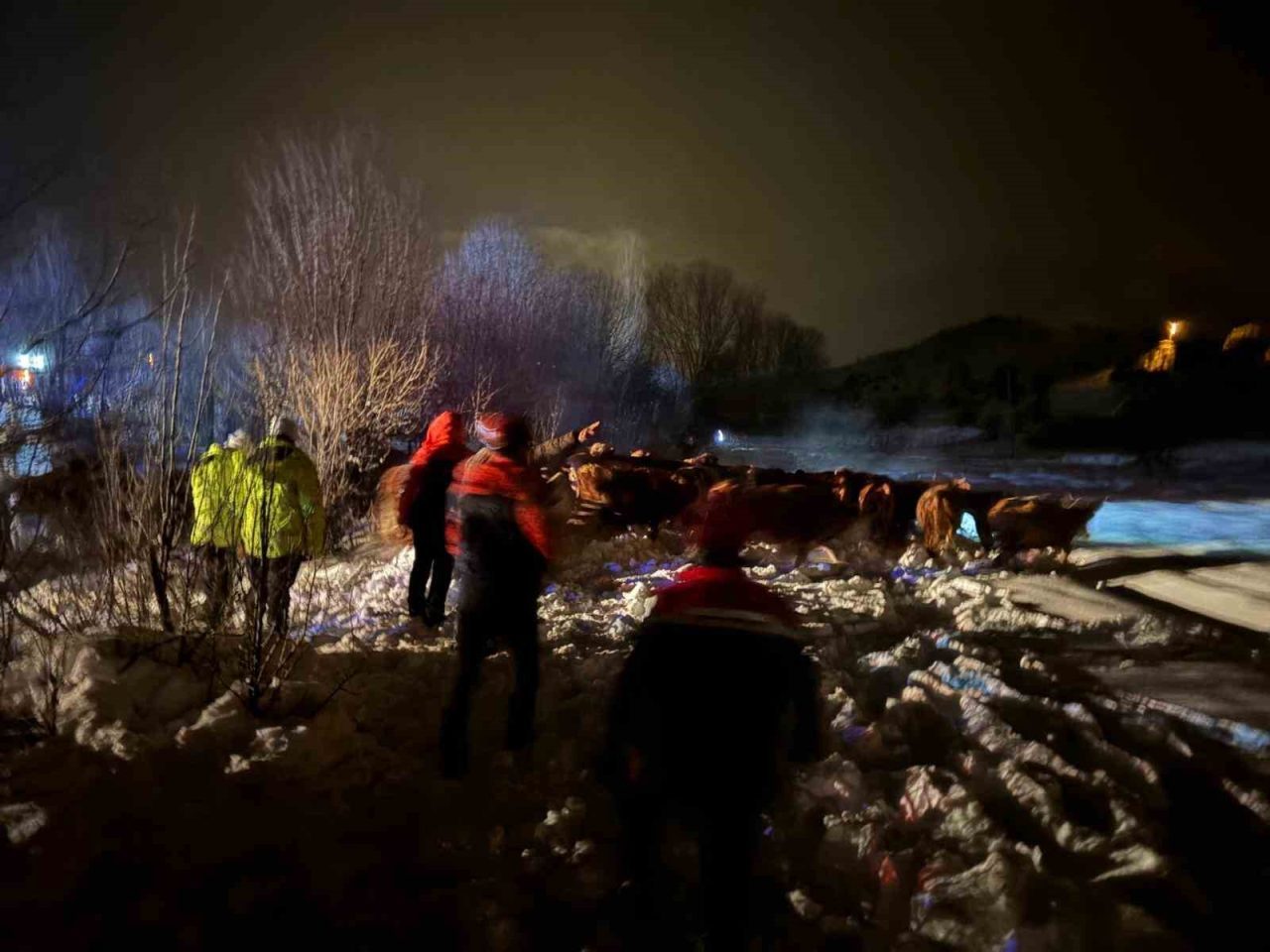 Dondurucu soğuk ve karla kaplı bölgede yürütülen çalışmalarda, tırda bulunan 45 büyükbaş hayvan çevre köylerdeki uygun ahırlara nakledilerek donma riskinden kurtarıldı. Kazada 1 hayvan telef olurken, 2 hayvan yaralandı.