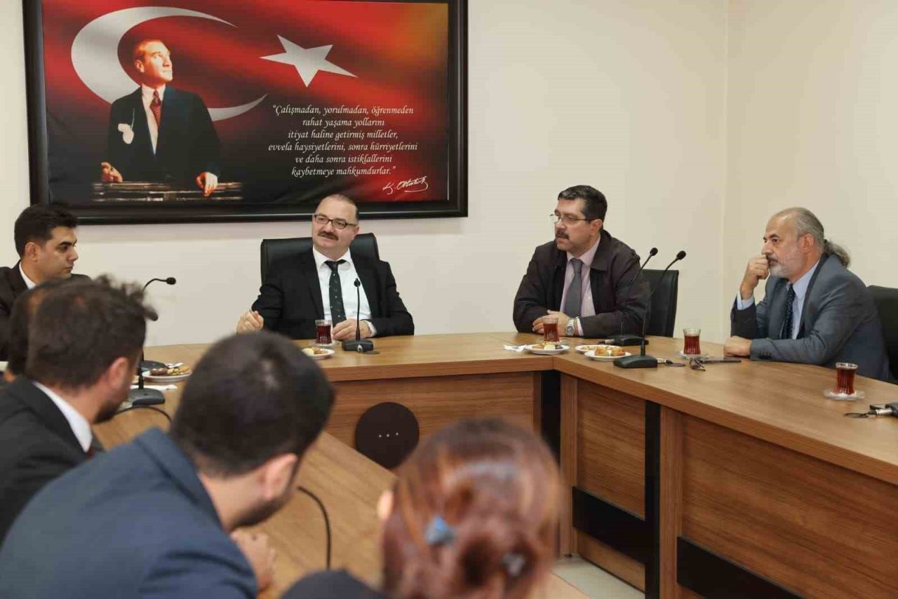 Ardından akademik ve idari personelle bir araya gelen Rektör Hacımüftüoğlu, öğretim süreçlerinin verimliliği ve eğitim kalitesinin artırılmasına yönelik değerlendirmelerde bulundu. Akademik birimlerin gelişiminin, üniversitenin genel vizyonuna doğrudan katkı sunduğunu vurgulayan Hacımüftüoğlu: “Atatürk Üniversitesi olarak tüm birimlerimizde eğitim-öğretim faaliyetlerinin en yüksek standartlarda yürütülmesi bizim önceliğimizdir. Fakültelerimiz ve meslek yüksekokullarımızda yapılan her çalışma, üniversitemizin araştırma odaklı yapısına güç katmakta ve nitelikli insan kaynağının yetişmesine katkı sağlamaktadır. Bu doğrultuda tüm akademik ve idari kadromuzla birlikte gayret göstermeye devam edeceğiz” ifadelerini kullandı.