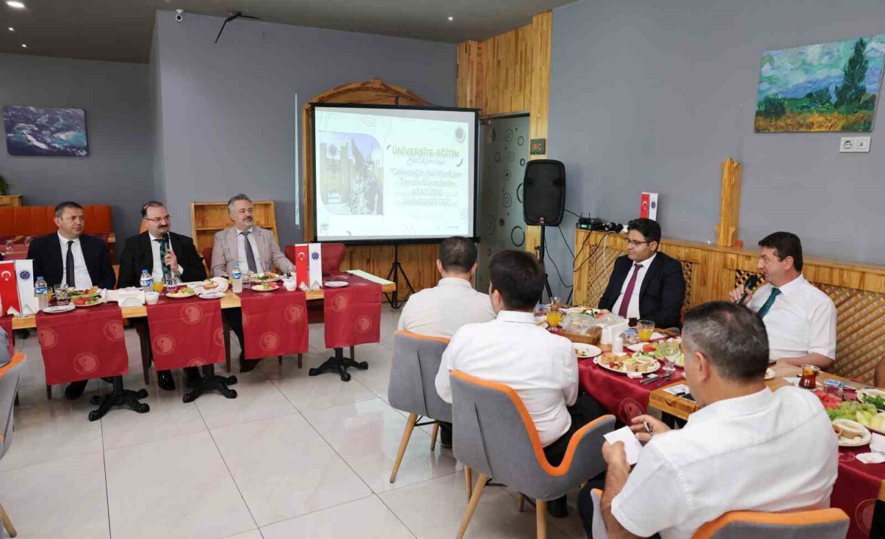 Tercih döneminde Atatürk Üniversitesinin sağladığı güçlü imkanların öğrencilere aktarılmasının önemine değinen Rektör Hacımüftüoğlu: “Sizlerin çabası ve yönlendirmeleriyle öğrenciler doğru hedefe ilerliyor. Bizler de üniversite olarak üzerimize düşeni yapıyor, onların başarılarına ortak oluyoruz. Hep birlikte şehrimizi, bölgemizi ve ülkemizi daha ileriye taşımak için aynı hedefe omuz veriyoruz” dedi.