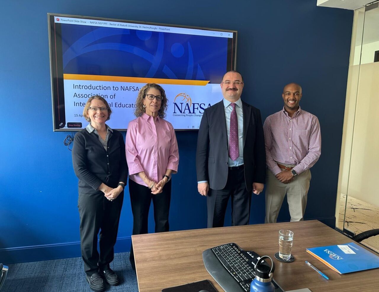 Uluslararası eğitim alanında dünyanın önde gelen mesleki kuruluşlarından biri olan NAFSA yetkilileriyle yapılan görüşmelerde, Atatürk Üniversitesinin uluslararasılaşma vizyonu, öğrenci değişim programlarının güçlendirilmesi ve küresel akademik ağlara daha etkin katılımı gibi konular masaya yatırıldı. Yapılan bu temaslarla, üniversitenin uluslararası öğrenci hareketliliği alanındaki stratejik hedeflerine bir adım daha yaklaşıldı.