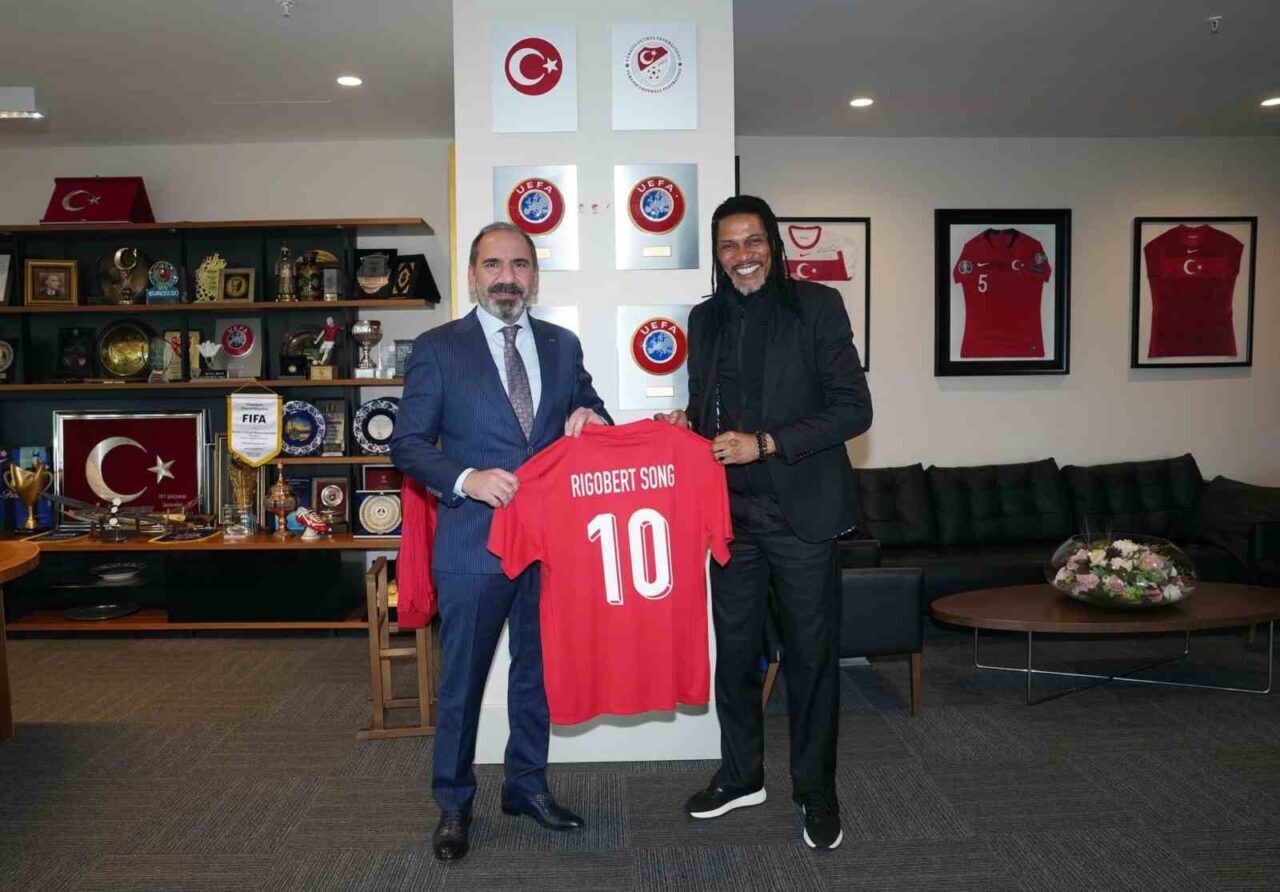 TFF Yönetim Kurulu üyeleri Tahir Ediz Kıray ve Bilal Arslan’ın da yer aldığı ziyarette; TFF Başkan Vekili Mecnun Otyakmaz, Rigobert Song’a üzerinde isminin yazılı olduğu A Milli Takım forması hediye etti.
