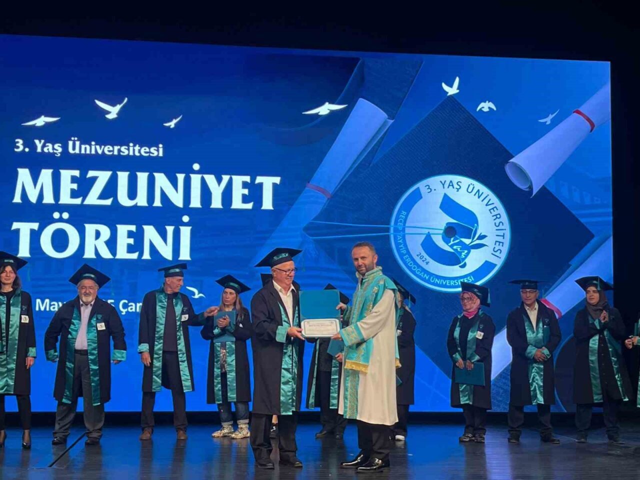 Recep Tayyip Erdoğan Üniversitesi (RTEÜ) tarafından 50-75 yaş grubunda olup günlük yaşamında sürdürmek zorunda olduğu bir iş hayatı ve ailevi yükümlülükleri olmayan bireylere yönelik yaşam dönemlerinin gerekliliklerine uygun şekilde aktif, üretken ve yaşam kalitelerinin artırılmasını desteklemek için ‘3. Yaş Üniversitesi’ açılmıştı. 2 dönem süren dersler kapsamında düzenlenen etkinliklere katılan katılımcılar okulu tamamlayarak mezun olmaya hak kazandı. 3. Yaş üniversitesi kapsamında ilkokul öğretmeni Fethi Karadeniz ve öğrencisi Yasemin Özçelik de aynı üniversiteden mezun olarak diplomalarını aldı. RTEÜ Konferans salonunda düzenlenen mezuniyet töreninde mezun olan öğrenciler kep attı.