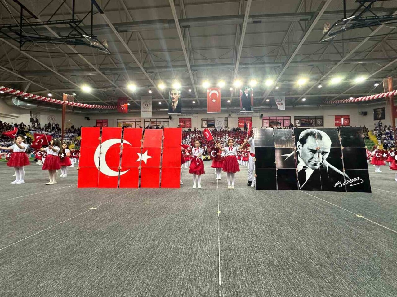 RİZE’DE 23 NİSAN ULUSAL EGEMENLİK VE ÇOCUK BAYRAMI KUTLAMALARI ÖĞRENCİLERİN TÜRK BAYRAKLARIYLA GERÇEKLEŞTİRDİKLERİ DANS GÖSTERİSİ İLE KUTLANDI