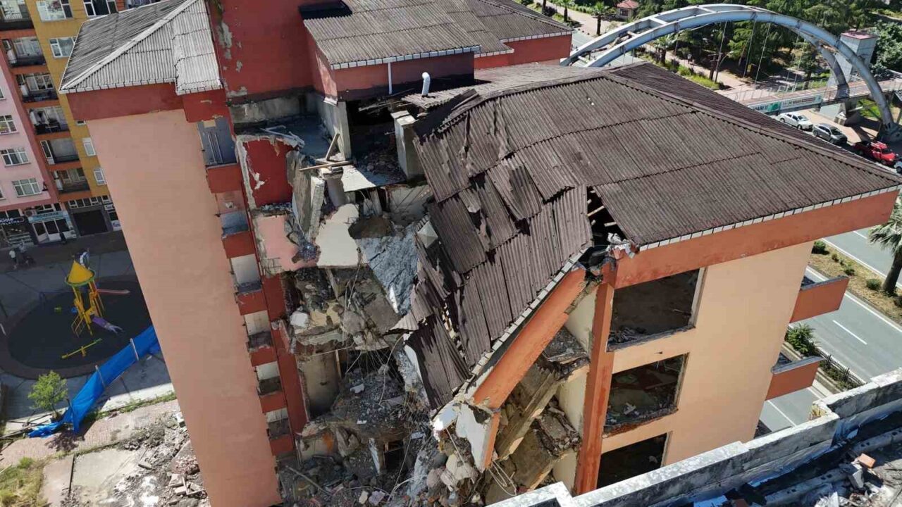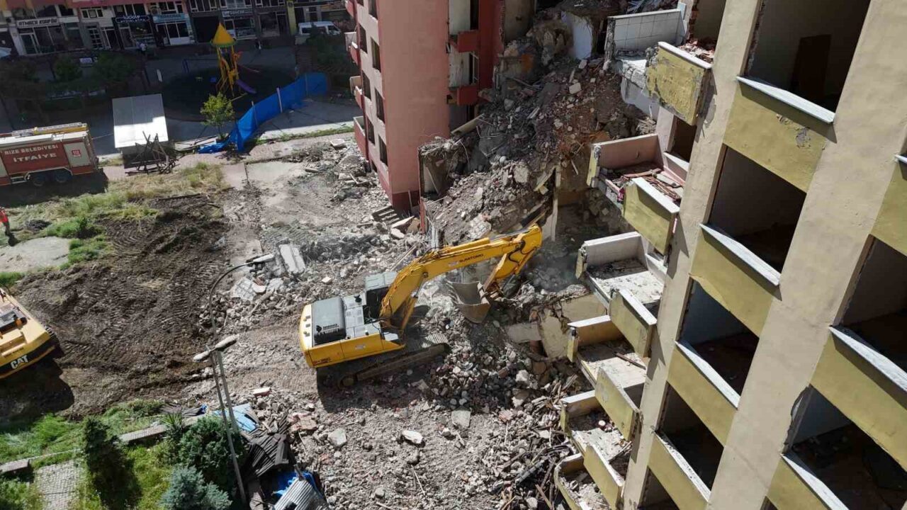 RİZE’DE ŞİDDETLİ FIRTINALAR SONRASINDA BOŞALTILAN 8 KATLI BİRLİ VE KORDON APARTMANLARINDA YIKIM İŞLEMLERİ BAŞLATILDI