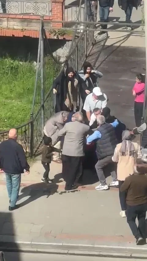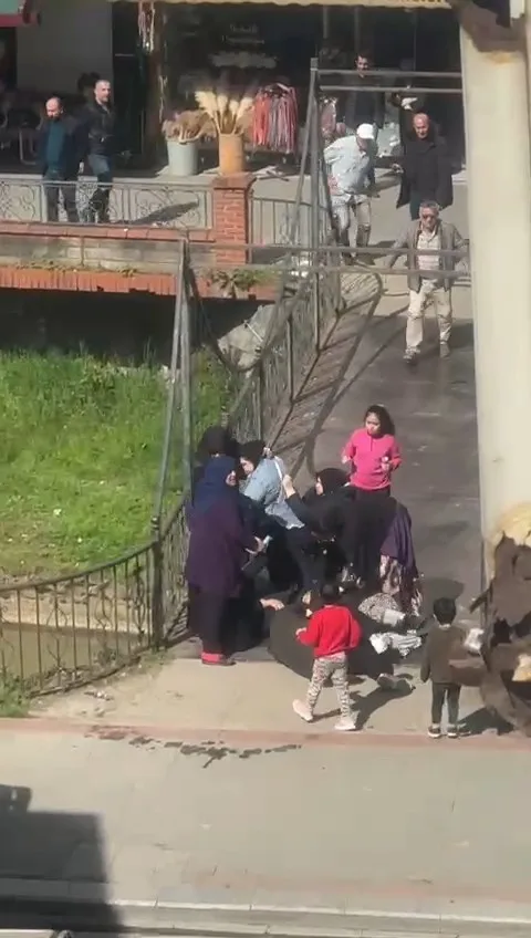 Rize’de kadınlar arasında çıkan kavgayı erkekler ayırırken, kavga anı cep telefonu kameralarıyla görüntülendi.