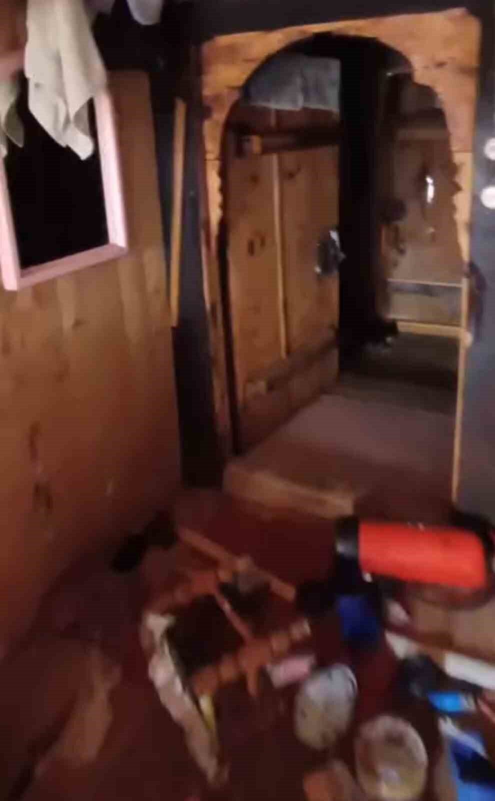 Öte yandan yayla evindeki hasarı görüntüleyen şahıs ayının yayla evinin kapısını kırarak girmesi üzerine “Kış uykusundan uyanan ayılar evleri talan etmeye başladı. Evi talan etmiş, bir taraftan vurmuş, öbür taraftan çıkmış. Kapıyi açmamış, kapıyı kırmış. Mübarek kapıyı açta gir içeri” diyerek tepki gösterdi.