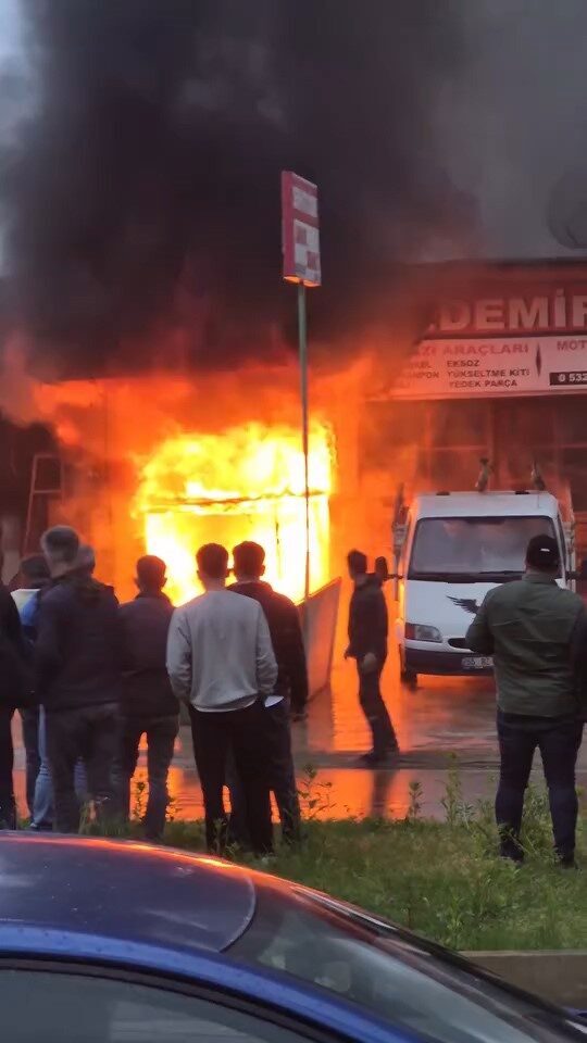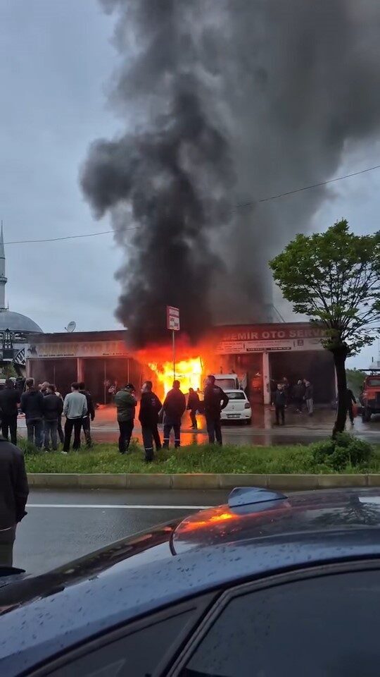 RİZE’DE SEBEBİ BELİRLENEMEYEN BİR NEDENDEN ÖTÜRÜ YANGIN ÇIKAN OTO DÖŞEME ATÖLYESİ KÜLE DÖNDÜ