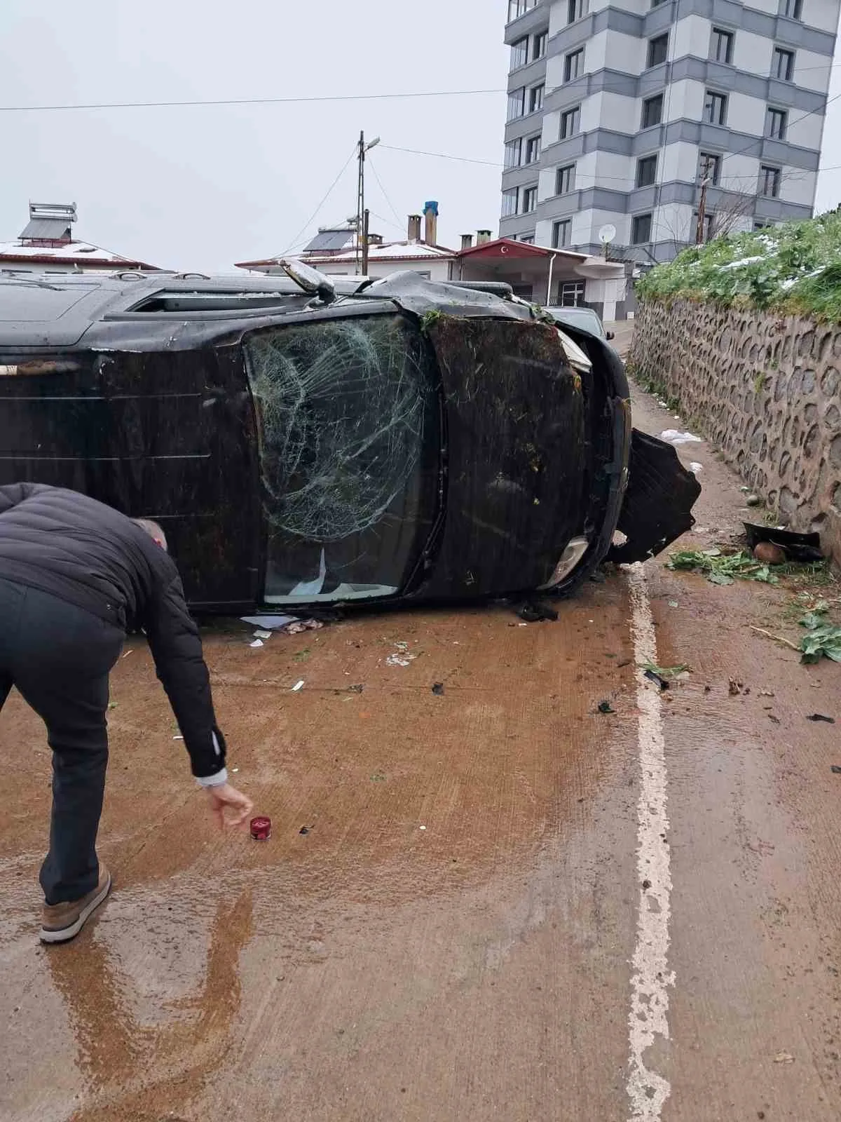 RİZE’DE MEYDANA GELEN KAZADA TAKLA ATAN OTOMOBİLİN SÜRÜCÜSÜ YARALANDI