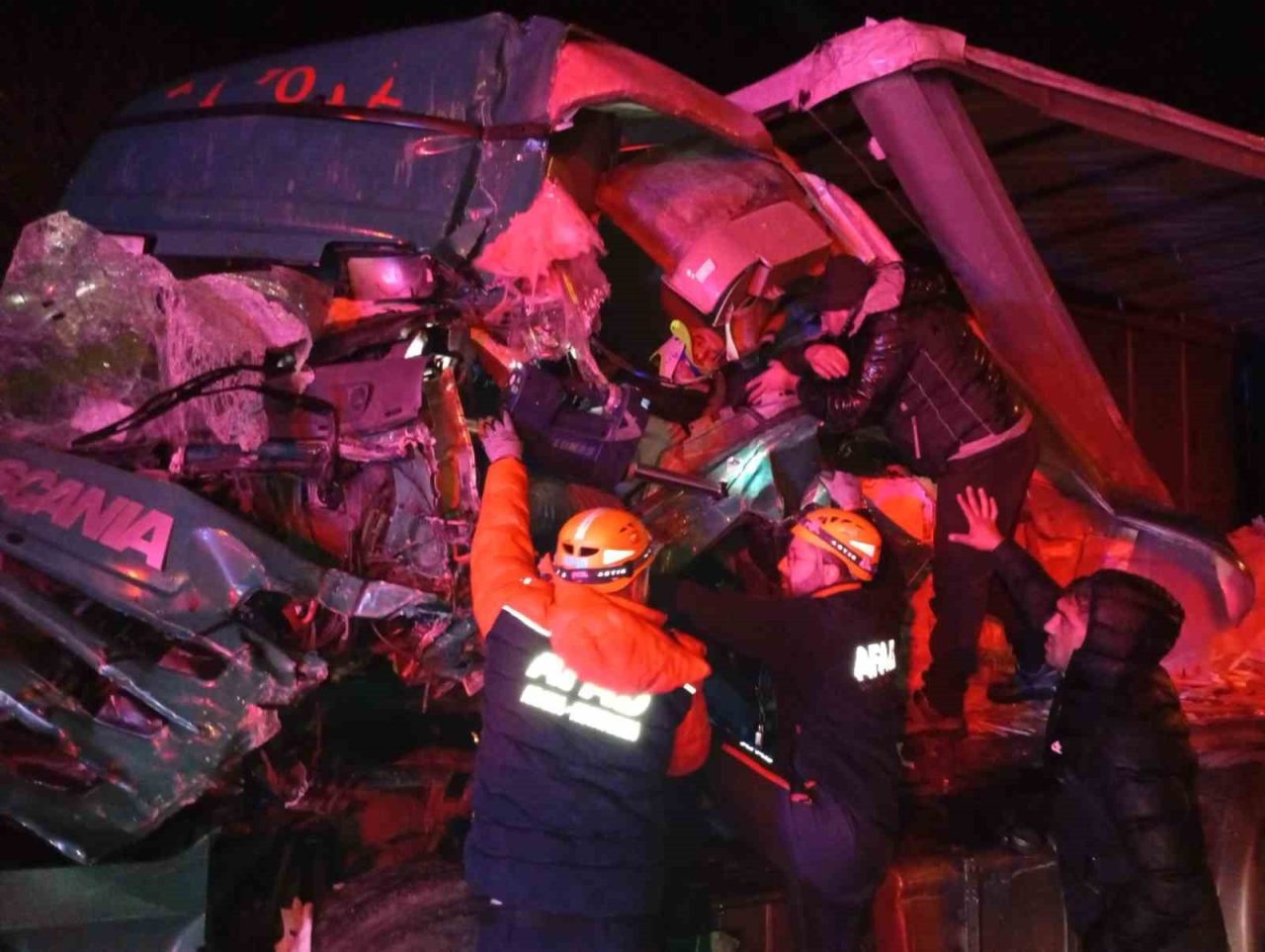 RİZE’NİN PAZAR İLÇESİNDE MEYDANA GELEN TIR KAZASINDA ŞOFÖR SIKIŞTIĞI ARACIN İÇERİSİNDEN AFAD EKİPLERİNİN MÜDAHALESİYLE KURTARILDI