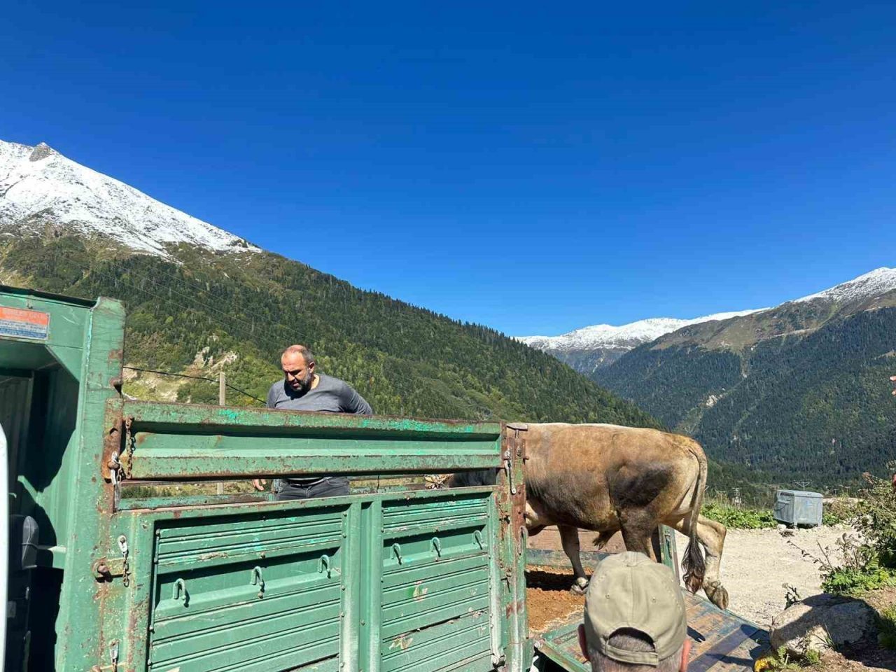 Rize İl Mera Komisyonu, il genelinde mevsim normallerinden çok önce yağan kar nedeniyle yaşanabilecek olumsuzlukların önüne geçmek istedi. Meteorolojik tahminlere göre önümüzdeki günlerde de devam etmesi beklenen kar yağışının yaylacıları zor durumda bırakmaması için yayla sezonunun 25 Eylül’de bitirilmesine karar verdi. Verilen kararın ardından yaylalardan göçler başladı. Rize’nin Çamlıhemşin ilçesine bağlı 2 bin 700 rakımlı Avusor Yaylası’nda yaşayan vatandaşlarda büyükbaş ve küçükbaş hayvanlarını kamyonlarla kışlıklarına indirmeye başladı.