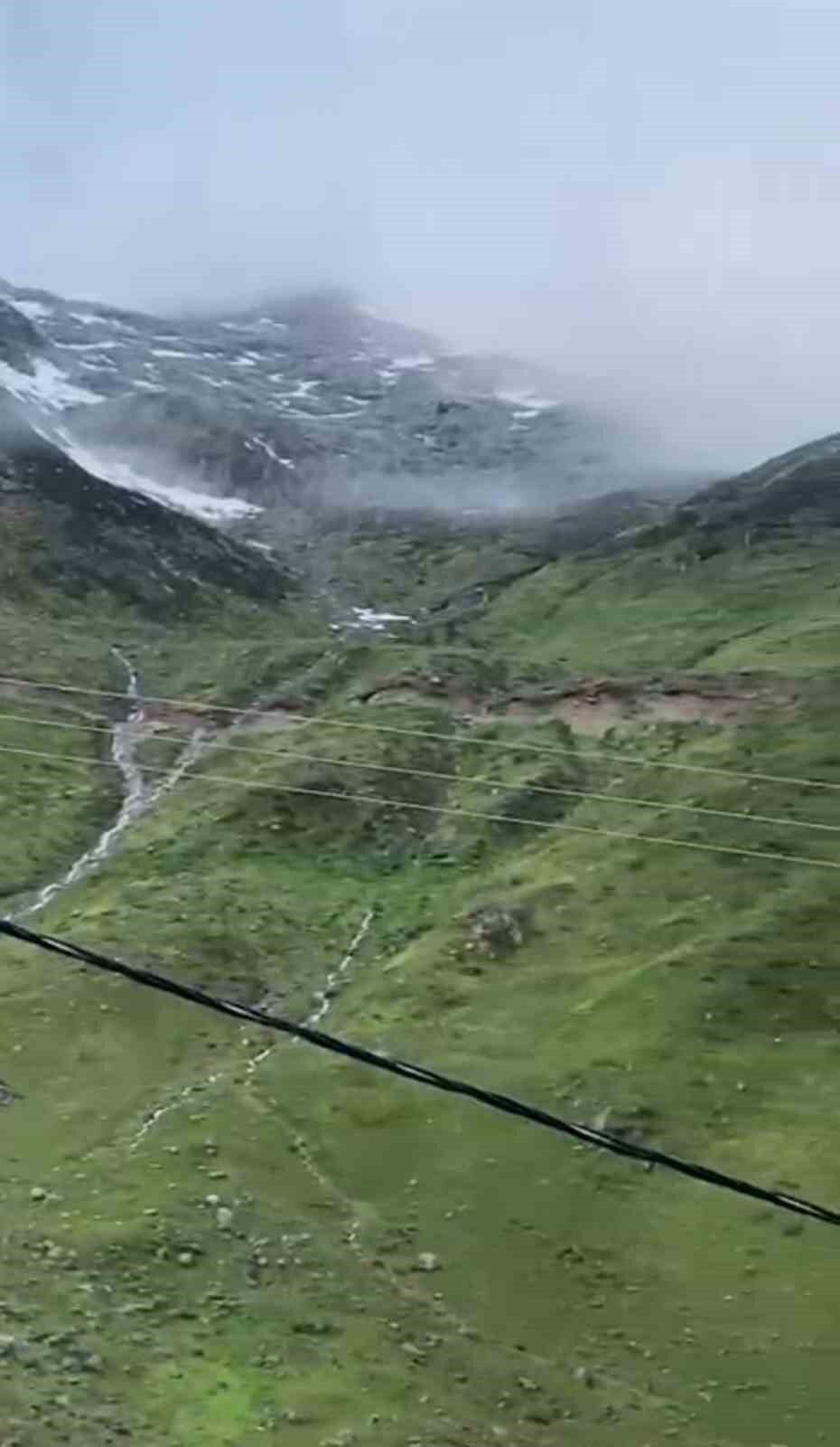 RİZE’NİN YÜKSEK RAKIMLI KAVRUN YAYLASI’NA HAZİRAN AYINDA YAĞAN KAR YAYLACILARI ŞAŞIRTTI
