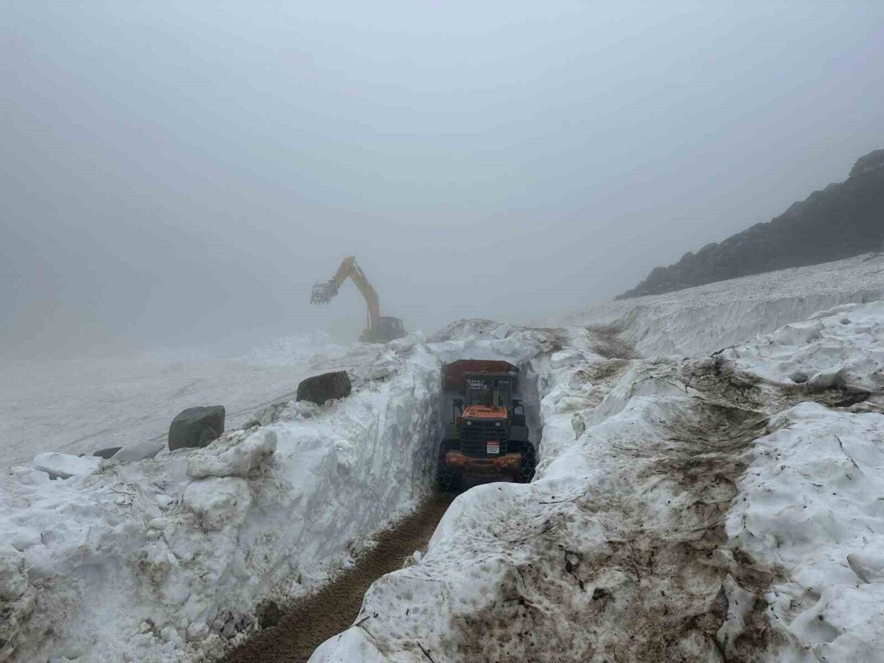 RİZE’NİN YÜKSEK KESİMLERİNDE KIŞ AYLARINDAN KALMA ÇIĞLARIN TEMİZLEME ÇALIŞMALARI HIZ KESMEDEN DEVAM EDİYOR.