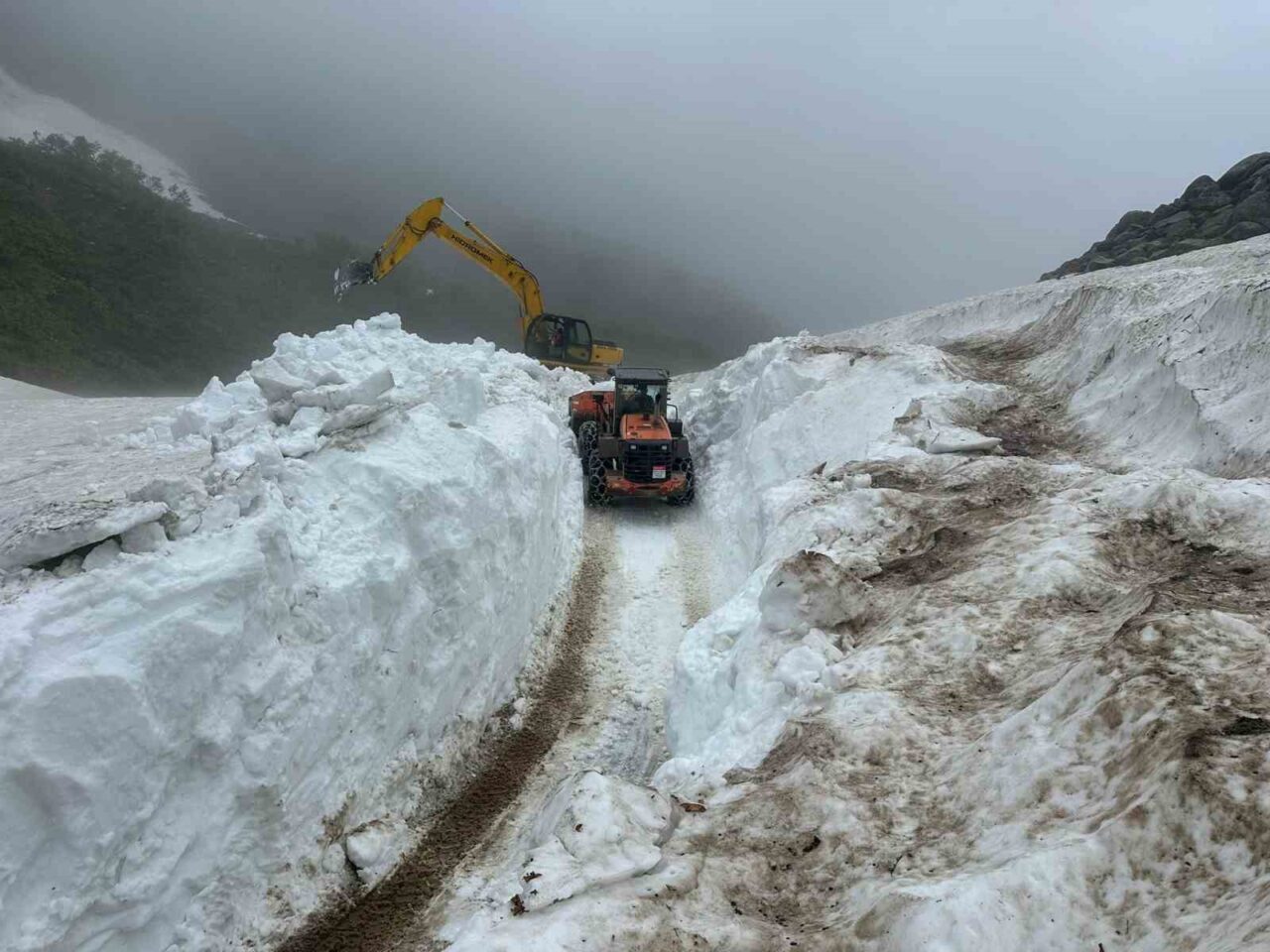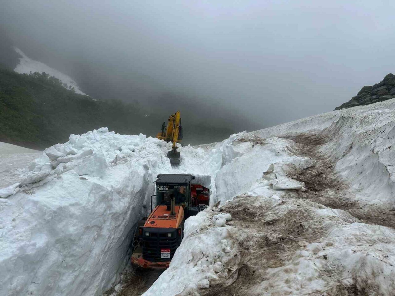 Rize İl Özel İdaresi ekipleri tarafından Rize’nin yüksek kesimlerinde kış ve bahar mevsiminde düşmüş ancak henüz erimemiş çığların temizleme işlemleri devam ediyor. Kış mevsiminin ağır geçtiği Doğu Karadeniz Bölgesi’nde Rize’de kar yağışlarından fazlaca nasibini aldı. Rize’nin yüksek kesimlerinde yağan kar, yaz mevsiminin gelmesine ve hava sıcaklıklarının yükselmesine rağmen henüz erimedi.