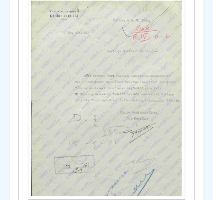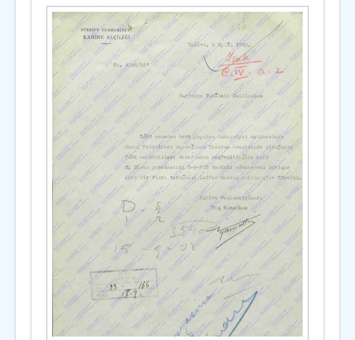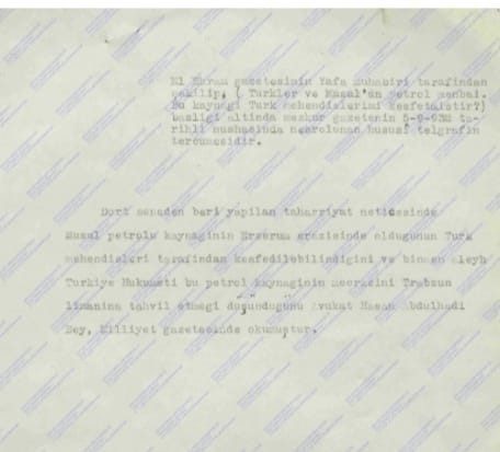 Söz konusu belge, Musul petrollerinin kaynağıyla ilgili uzun süredir tartışılan soruya ışık tutuyor ve Erzurum’un tarihî stratejik önemini yeniden gözler önüne seriyor. Belgeye göre, Musul petrollerini besleyen ana damarlar Erzurum topraklarından başlıyor ve o dönemde Türk mühendisler tarafından tespit edilmişti. Bu bilgi, 5 Eylül 1932 tarihinde Mısır’ın köklü gazetesi AlAhram tarafından yayımlandı. Gazetenin Yafa muhabirinin haberinde şu ifadeler yer aldı: “Türkler ve Musul Petrol Menbaı – Bu Kaynağı Türk Mühendisler Keşfetmiştir.”
