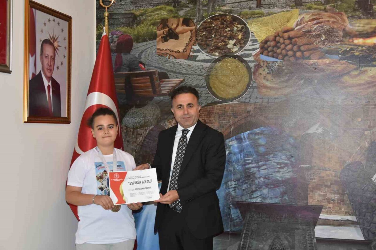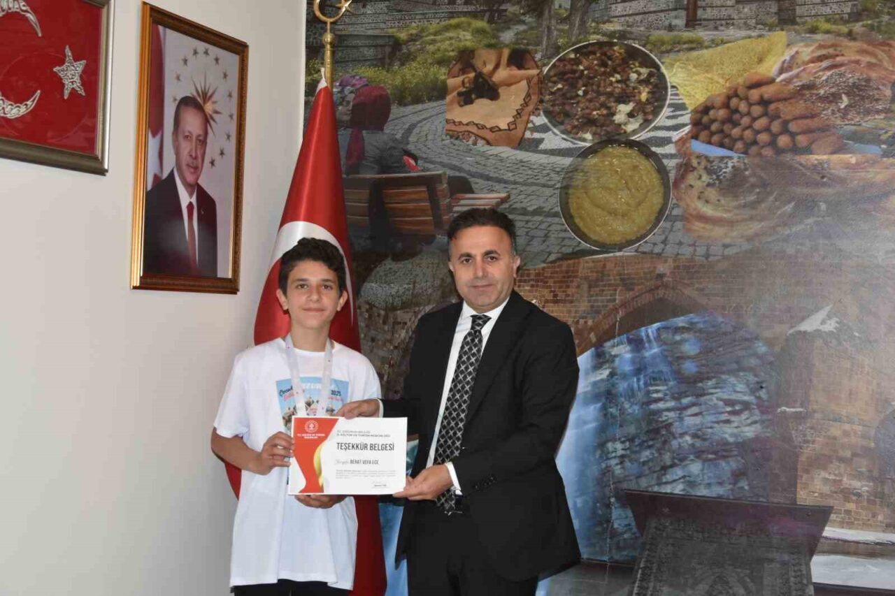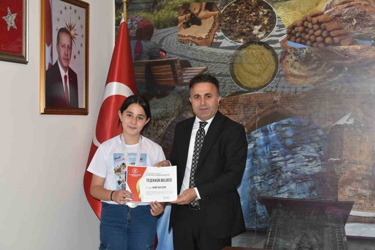 Yarışmaya katılan 180 proje arasından 2. olarak ödül almaya hak kazanan öğrenciler, proje sorumlusu öğretmenleri Emine Behiye Kütük ve Zakir Yolal ile birlikte Erzurum İl Kültür ve Turizm Müdürü Ahmet Yer’i makamında ziyaret etti. Ziyarette, İl Müdürü Ahmet Yer başarılı öğrencilere teşekkür belgeleri ve çeşitli hediyeler takdim ederek bu örnek çalışmadan dolayı öğrencileri ve öğretmenlerini tebrik etti. İl Müdürü Yer, çocukların Erzurum’un tanıtımına bu denli özgün bir katkı sunmalarından büyük memnuniyet duyduklarını belirterek; bu tür projelerin öğrencilerde hem tarihî ve kültürel bilinç geliştirdiğini hem de iletişim ve araştırma becerilerini artırdığını ifade etti. Erzurum İl Kültür ve Turizm Müdürlüğü olarak böylesine değerli çalışmaların daima destekçisi olunacağı vurgulandı.