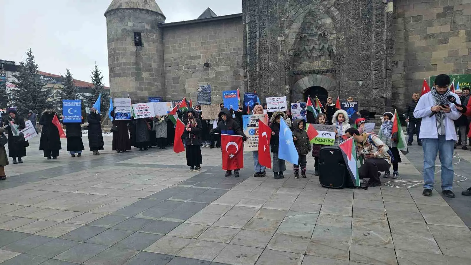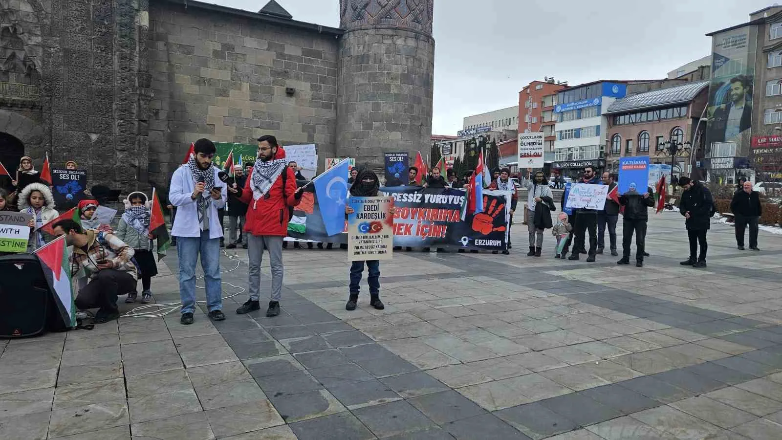 Basın açıklamasını okuyan Atatürk Üniversitesi Tıp fakültesi öğrencisi Yusuf Çiftçi, “Bizler 71 haftadır zulmün karşısında olduğumuzu kendimize ve size hatırlatmak için burada toplanıyoruz. Her cumartesi hiçbir şey yapmamaktan daha iyi olan bir şeyi yapmak için, “evimde duramadım Allahım” diyebilmek için bu meydana atıyoruz kendimizi. İsrail ateşkes antlaşması yaparak vermiş olduğu sözünü bozdu. Yalanları dosta düşmana ayan olan, şantajları ve tehditleri sosyal medyaya düşen, iftiraları çarşaf çarşaf ortaya çıkan lanetli topluluğun sözünü tutmaması, bizi şaşırtmadı. Evet, kafir kafirliğini yaptı, peki Müslümanlar Müslümanlığını yapacak mı? Kendimize sormamız gereken soru bu! Bizler ilk ateşkes fırsatında çok özlediğimiz zehir dolu boykot ürünlerine koşan haysiyetsiz kişiler mi olacağız yoksa küvözdeki bebeklerin oksijen tanklarını vurarak hastane odasında onları çürümeye bırakan bu zalime para kazandırmamayı şiar edinmiş akıl sahipleri mi olacağız?” dedi.