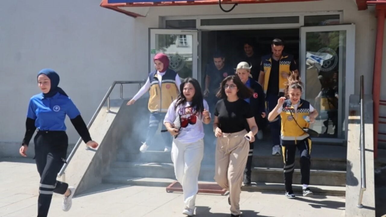 Gerçeği aratmayan tatbikatta Sağlık Hizmetleri Meslek Yüksekokulu Acil Durum ve Afet Yönetimi ile İlk ve Acil Yardım programlarında öğrenim gören öğrencilerimiz için teorik bilgilerini saha uygulama fırsatı buldu.
