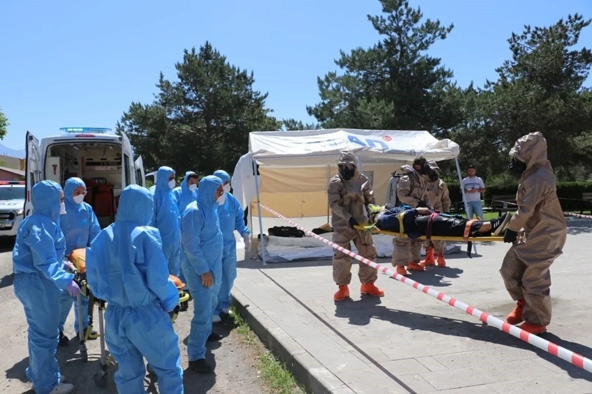 Tatbikat kapsamında, senaryo gereği yüksekokulda bulunan laboratuvarda kimyasal madde sızıntısı olduğu ve etrafa keskin bir koku yayıldığı yönünde 112 Acil Çağrı Merkezi’ne ihbarda bulunuldu. Kısa sürede bölgeye ulaşan İl Afet ve Acil Durum Müdürlüğü (AFAD), Ulusal Medikal Kurtarma Ekibi (UMKE), Erzincan Belediyesi İtfaiye Müdürlüğü, 112 Acil Sağlık, Emniyet Müdürlüğü ile Çevre, Şehircilik ve İklim Değişikliği Müdürlüğü’nden oluşan 47 personel hızlıca çalışmalara başladı.