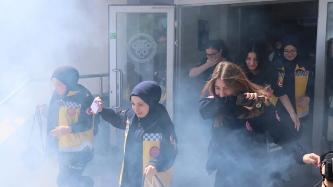 SAĞLIK HİZMETLERİ MYO’DA KBRN VE YANGIN TATBİKATI GERÇEKLEŞTİRİLDİ