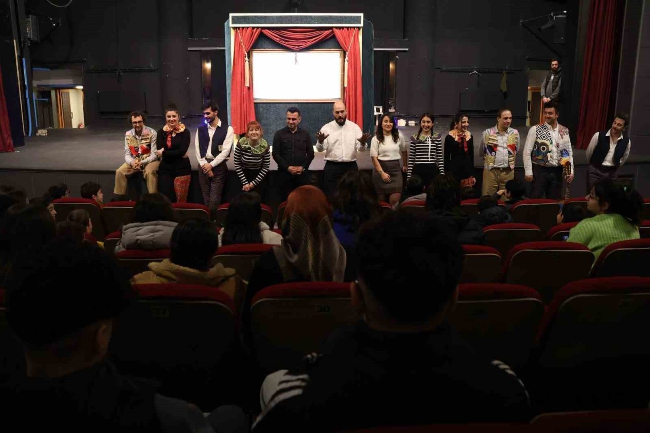 Etkinlik kapsamında çocuklar, Karagöz ve Hacivat gösterisini izleyerek geleneksel gölge oyununun eğlenceli dünyasına adım attı. Gösterinin ardından tiyatro atölyelerini gezen çocuklar, sahne arkasındaki üretim sürecini yerinde inceleme imkânı yakaladı.