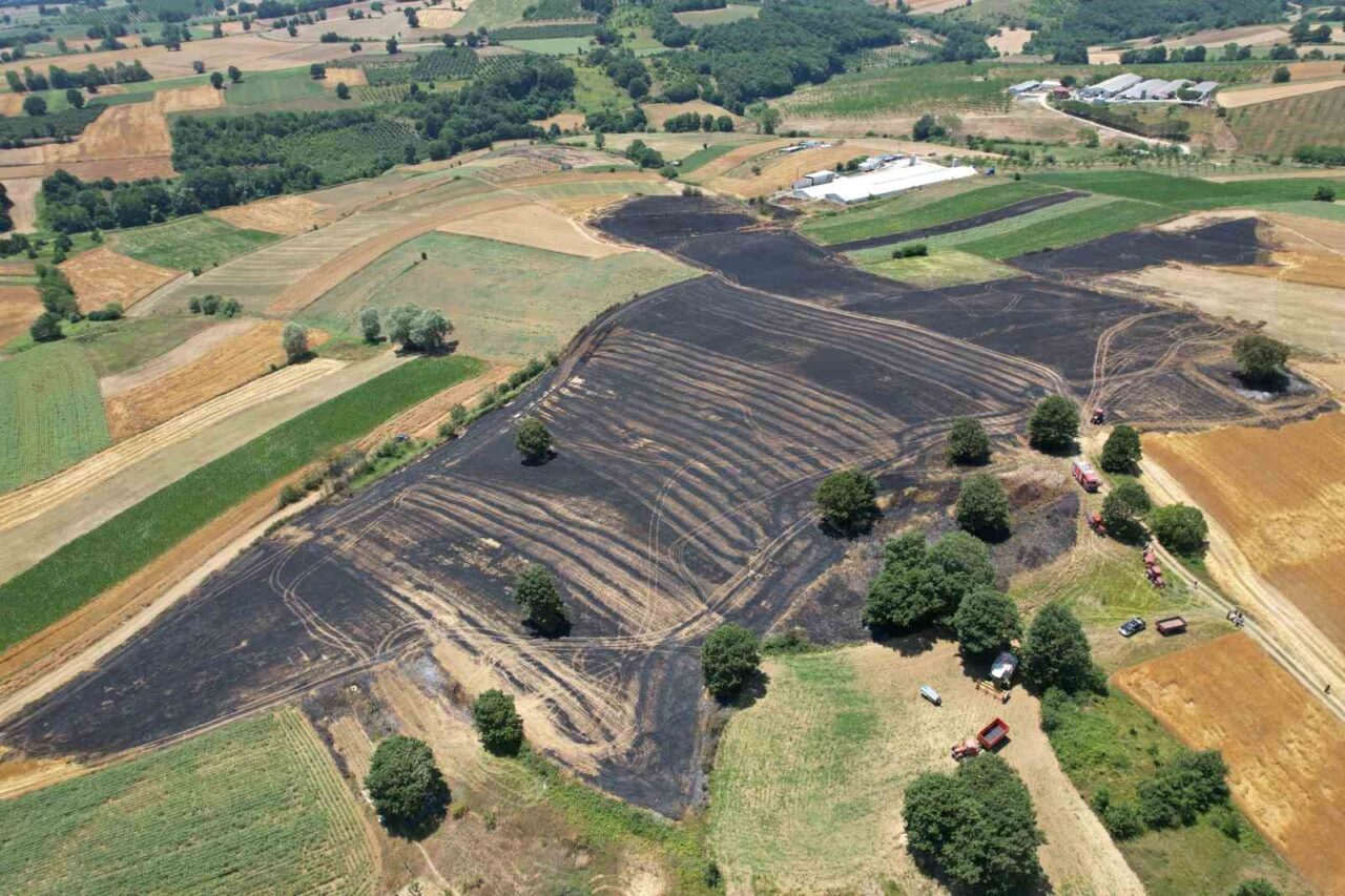 Sakarya’nın Adapazarı ilçesinde çıkan yangında buğday ve arpa ekili 150 dönümlük alan küle döndü.