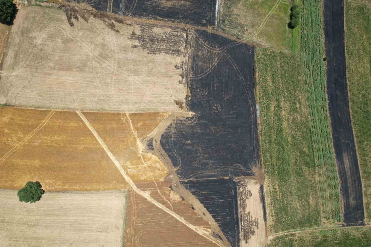 Aşırlar Mahallesi’ndeki arpa ve buğday ekili arazide henüz belirlenemeyen nedenden yangın çıktı. Alevler hızla yayılırken, ihbarla olay yerine çok sayıda itfaiye ve Orman İşletme Müdürlüğü’ne bağlı arazözler sevk edildi. Yangın ekiplerin 2 saat süren çalışmayla kontrol altına alınarak söndürüldü. Yaklaşık 150 dönümün zarar gördüğü yangına ilişkin inceleme başlatıldı. Yanan arazi havadan da görüntülendi.