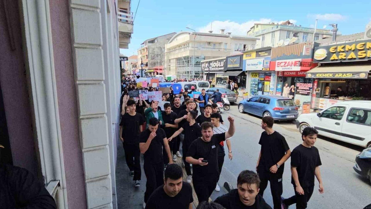SALDIRIYA TEPKİ GÖSTERMEK AMACIYLA SAPANCA ANADOLU LİSESİ ÖĞRENCİLERİ, ÖĞRETMENLERİ YILMAZ İLE ŞEHİT PİLOT ALBAY GÜNERİ EKİCİ PARKI’NA KADAR YÜRÜDÜ.
